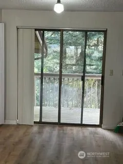 Great rent! Includes water, sewer & garbage! 1 Bdrm, 1 full bath, condo on the top floor of a 2 story building, Deck off dining/living room opens to green space off balcony. 2 assigned parking spots come with condo. Blinds in living room & curtains in bedroom are available for use or bring your own. Easy care laminate floors in living areas. Vinyl in bathroom. Application fee for credit/background check is non-refundable, $64.00 for each potential tenant 18 Y/O +. Washer & dryer are stacked & off dining, kitchen area. Pets with Landlord’s permission & with non refundable pet fee .