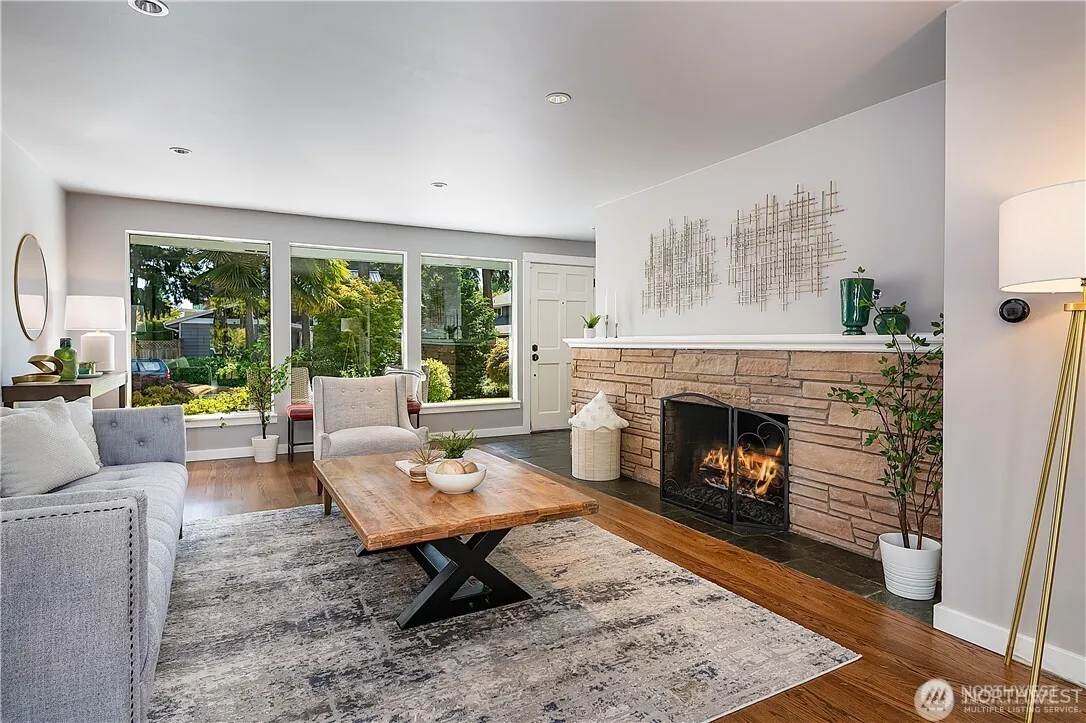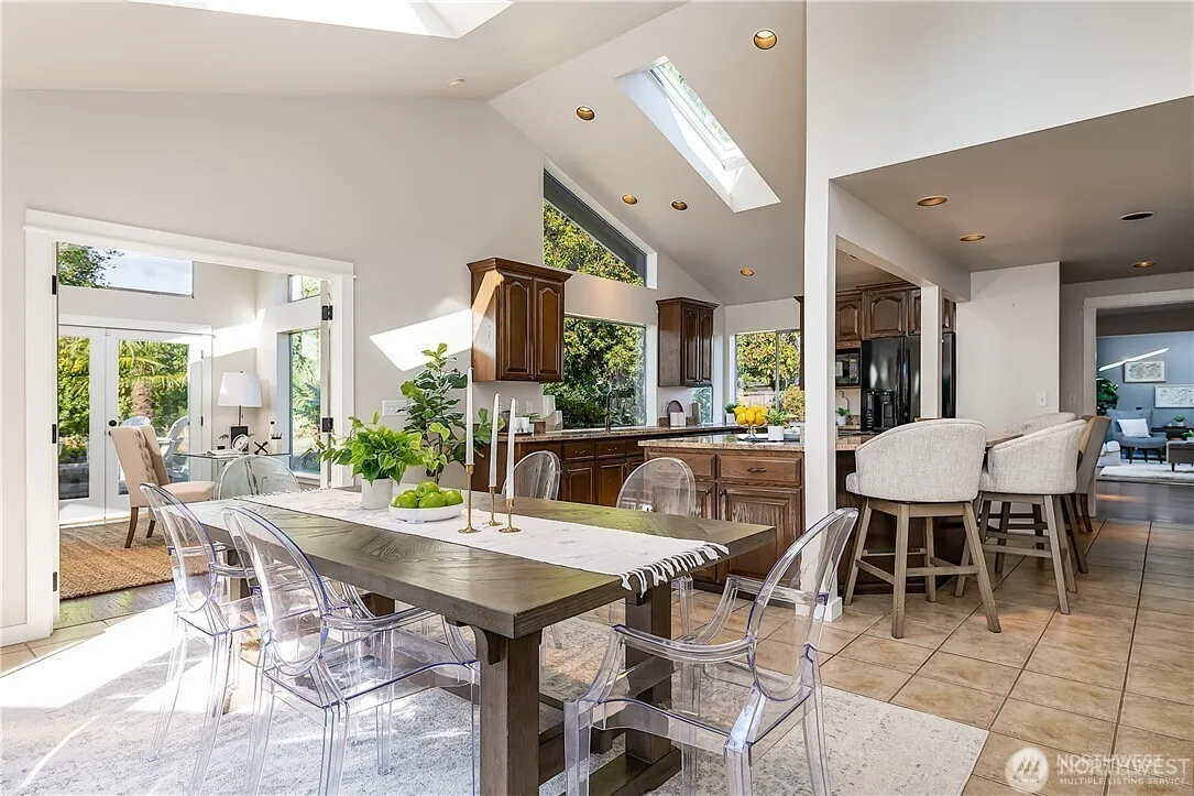 Avail Now: Discover the charm and contemporary elegance of this updated Enatai rambler. The heart of the home is the open kitchen and dining area, featuring vaulted ceilings, skylights, and a versatile island for effortless entertaining. Adjacent is a bright sunroom, perfect as a 4th bedroom, home office or study space. The spacious living room has warm hardwoods and cozy gas fireplace. Primary suite includes an adjacent den and walk-in closet. Enjoy al fresco dining on the deck or unwind in the covered cabana. Beautifully landscaped gardens offer a peaceful oasis; yard maint. included. Garage w/ample storage. Close to the South Bellevue light rail. Just minutes to 1-90, 1-405, downtown Bellevue and Seattle. Acclaimed Bellevue Schools. Dogs under 25 lbs considered CBC with additional monthly charge.