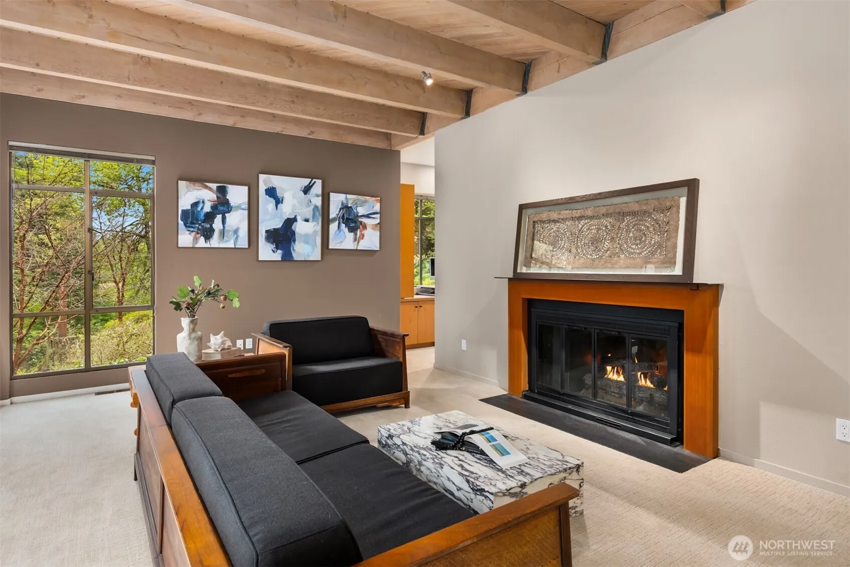 Nestled on a private, wooded .78-acre lot near Port Madison, this architecturally inspired home blends classic Pacific Northwest design with a sense of quiet retreat. Cedar shake siding, expansive windows, and natural materials create a seamless connection to the surrounding landscape, filling the home with light and a calming, organic warmth. Inside, clean lines and ceilings with exposed beams define the main living spaces, where an open, airy layout is anchored by a wood-burning fireplace. Thoughtfully updated kitchen and baths complement the home’s timeless character, while a dedicated office and flexible living areas offer space to work, gather, and unwind. Outdoor living is equally inviting, with terraced grounds, a sunlit deck, and mature landscaping that enhance the home’s sense of privacy and tranquility. Set in a coveted north-end location with easy access to Port Madison, Hidden Cove Park, trails, and island amenities, this is Bainbridge living at its most peaceful—grounded, refined, and effortlessly connected to nature.