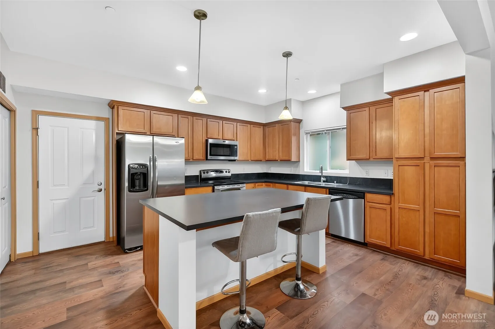 Bright, open, and built for the way people actually live. This move-in ready Cordata townhome delivers the space, style, and location that’s hard to find, all wrapped in a warm, walkable community that residents genuinely love. The main level open floor plan flows effortlessly from entry to living to kitchen, with brand-new LVP flooring setting a clean, modern tone throughout. The spacious kitchen features a generous island, stainless steel appliances, and abundant storage, designed so you can cook dinner while the conversation flows from the couch. Upstairs, new carpet runs through generously sized bedrooms, including a primary suite made for real rest. A private ensuite bath and walk-in closet give you the kind of morning and evening routine that feels unhurried and hotel-worthy. The oversized 2-car garage sets this townhome apart, with room for vehicles, gear, hobbies, and storage without compromise. Out front, a covered porch invites you to slow down with a morning coffee and take in the neighborhood. Life in Cordata checks every box. A community park, basketball court, and playground are steps from your door. Trader Joe’s, Costco, Bellis Fair Mall, local dining, and top medical facilities are minutes away with no highway and no hassle. Wide streets, dedicated bike lanes, and 25 acres of Cordata Park trails make this one of Bellingham’s most livable neighborhoods.