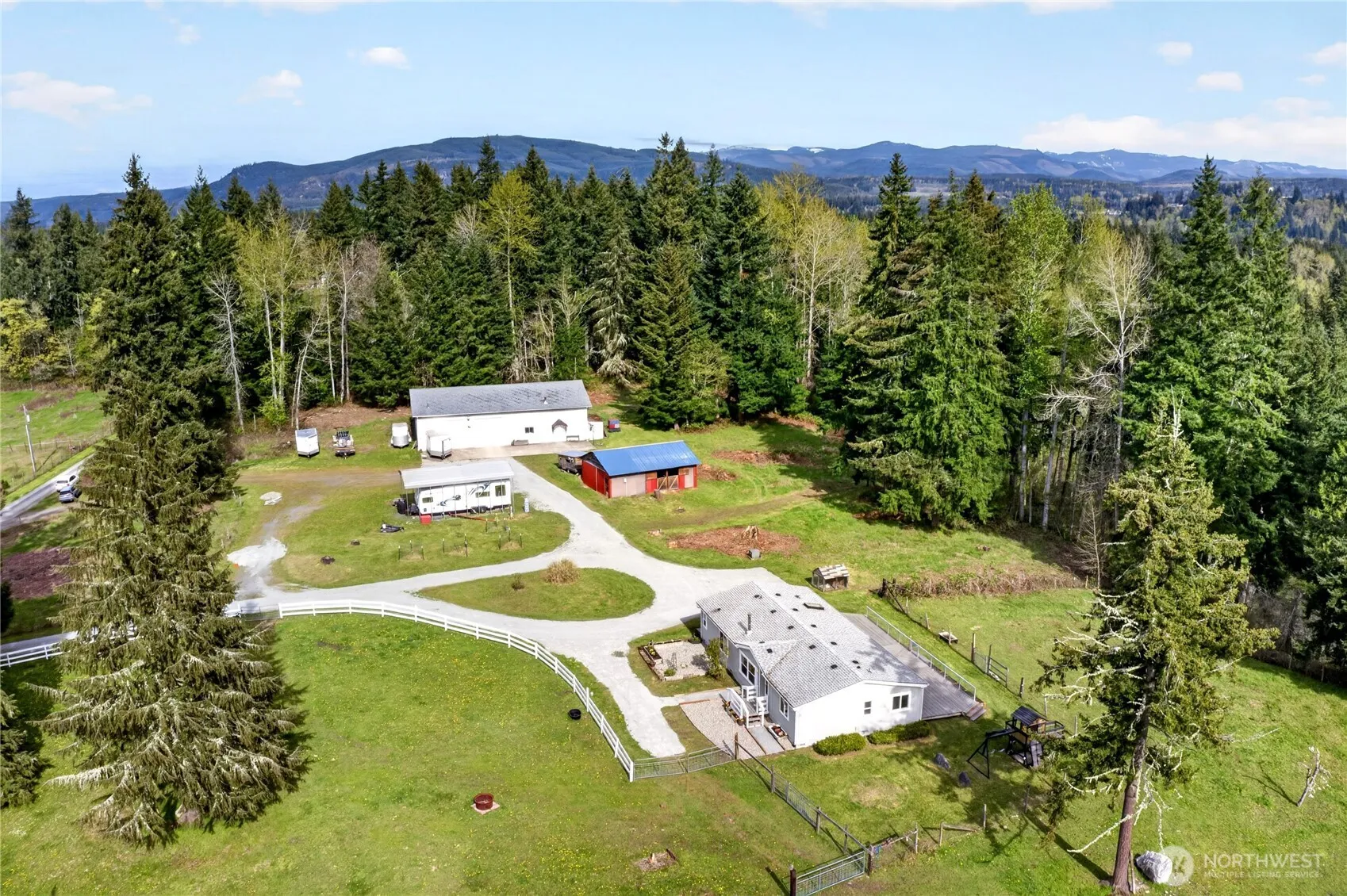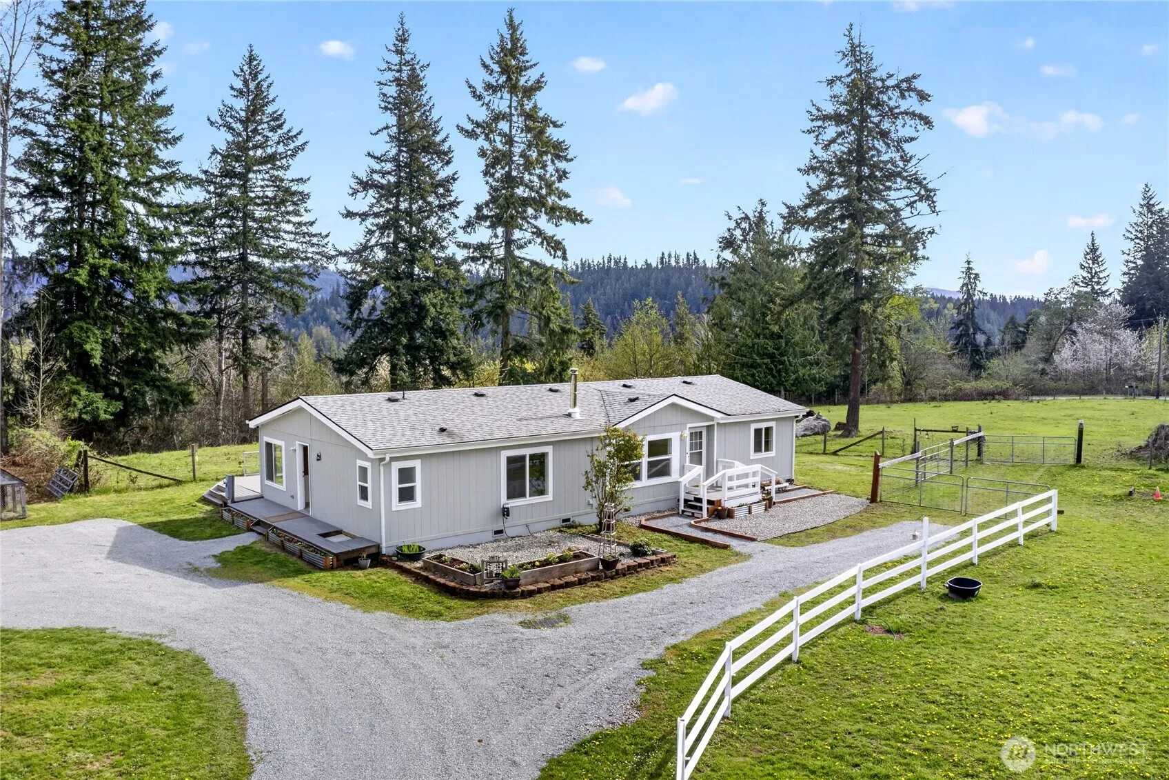 Marketing Remarks: BEAUTIFUL HOME, ACREAGE + DREAM SHOP!! This three-bedroom two bath home has new carpet throughout, recently painted inside and out, wood stove, large kitchen, office, large primary suite. Has a heated 40×70 shop (2800 sq. ft) wired for 220 & plumbed for air has 1/2 bath; Has a two-stall barn. Pasture is fenced and cross fenced for horses. Covered RV parking with/RV dump. Large private back deck (Trex) to relax on. Garden space. This is a must see!!
