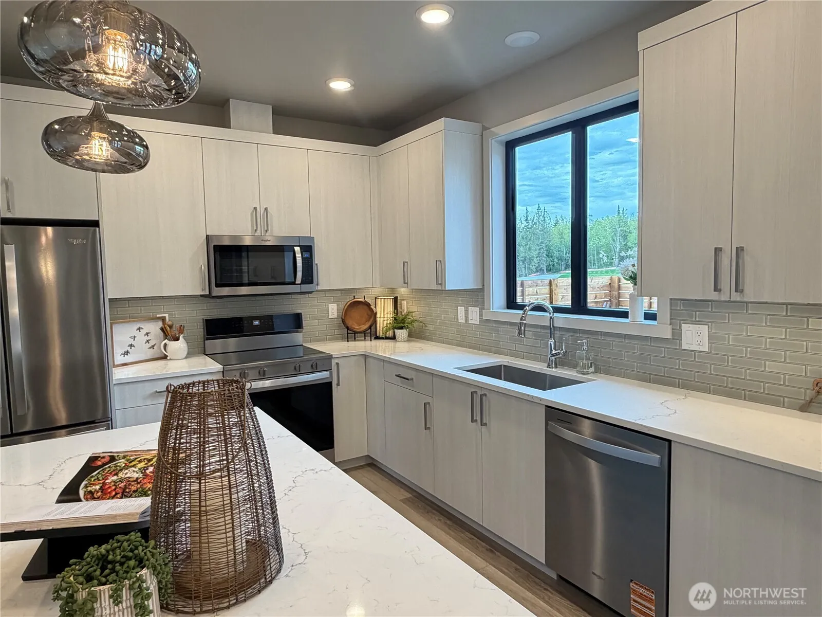 Tucked into the sought-after Crossridge community, this final new-construction home offers a rare blend of privacy, style, and effortless living. Set on the largest lot in the development, it enjoys no neighbors to the north, ultimate Pacific Northwest views, and a serene backdrop of protected native land. This 3-bedroom, 2.5-bath home lives larger than its 1,688 square feet, featuring elevated, custom interior finishes throughout. The main level is designed for everyday living and entertaining, with a spacious dining area, a large kitchen centered around an oversized quartz island with seating, and a bright living room with a sleek electric LED fireplace. European multi-hinge windows and a modern French door slider bring in abundant natural light and open to a covered patio.Upstairs, well-appointed bedrooms and designer finishes continue, reflecting the home’s unique, curated style—no two Crossridge homes are alike. Low-maintenance fenced backyard with turf landscaping and two raised garden beds. Dead-end alley provides garage access, enhancing the quiet setting. Wide sidewalks and close to parks, schools, shopping, and medical, this lock-and-leave home is a rare opportunity to own the last home in Crossridge. SELLER OFFERING UP TO $19,000 IN BUYER CREDITS!