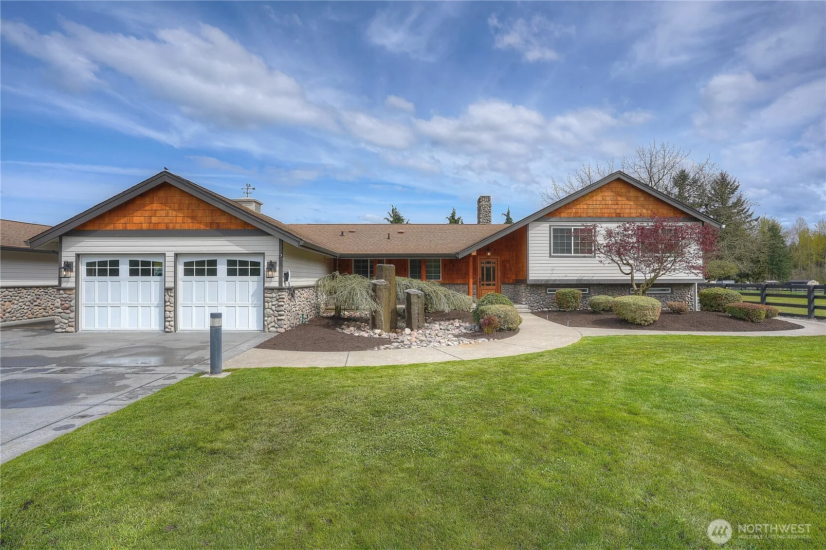 This one checks ALL the boxes!! An exceptional 10-acre equestrian estate with Mt. Rainier views, designed for horse enthusiasts, hobby farmers, or anyone seeking space, beauty, and versatility. Enter through custom wrought iron gates with stone columns and onto impeccably maintained grounds framed by mature landscaping and wide-open pastures. The tastefully updated 3-bedroom home blends comfort & luxury with a chef’s kitchen featuring high-end stainless appliances, granite countertops and custom tile back splash, open living spaces, and a spacious owner’s suite with fireplace, spa-inspired bath, huge walk-in closet, and French doors which leads to a private patio with hot tub. A finished 1,000sf detached art studio with ¾ bath extends your living space, and adds flexible area ideal for a home office, gym, bonus room or your creative needs! The 8-stall show barn features power, water, tack room, and feed storage, while the 160×75 outdoor arena offers all-weather footing & lighting. A 60×30 detached 5-bay pole barn/building provides abundant space for equipment, RVs, vehicles, or workshop use. The property is fully fenced & cross-fenced with dual access with plenty of room to turn your horse trailers or big rigs around and is perfectly tailored for heavy equipment or the most discerning mechanic’s desires. This remarkable property delivers it all – space, style, and endless possibilities, every detail has been thoughtfully curated – move in ready, versatile, & unforgettable.