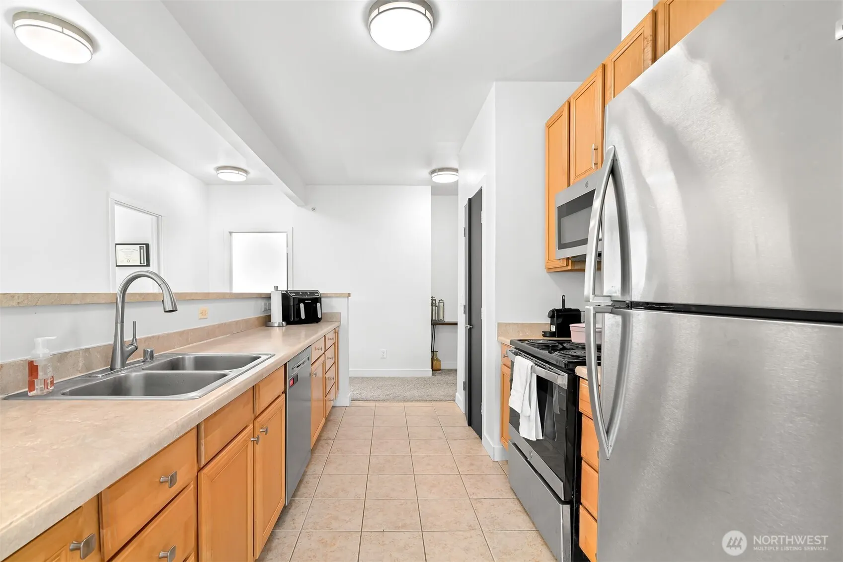 Spacious and light-filled single-level condo perfectly situated on the second floor! This inviting home features an open-concept layout with 3 generous bedrooms and 2 full baths. The kitchen shines with stainless steel appliances and ample counter space, flowing seamlessly into the dining and living areas—ideal for everyday living or entertaining. Step out to your private balcony to enjoy morning coffee or evening sunsets. The roomy primary suite includes an ensuite bath for added comfort. Conveniently located near shopping, restaurants, parks, and amenities, this condo offers easy living in a prime location!