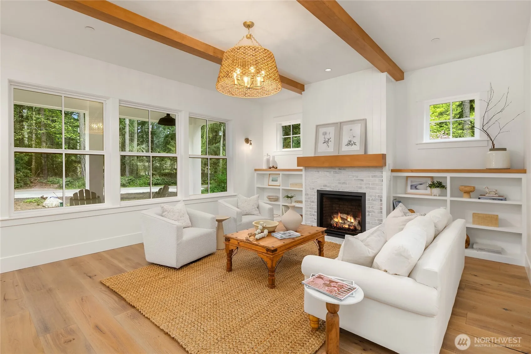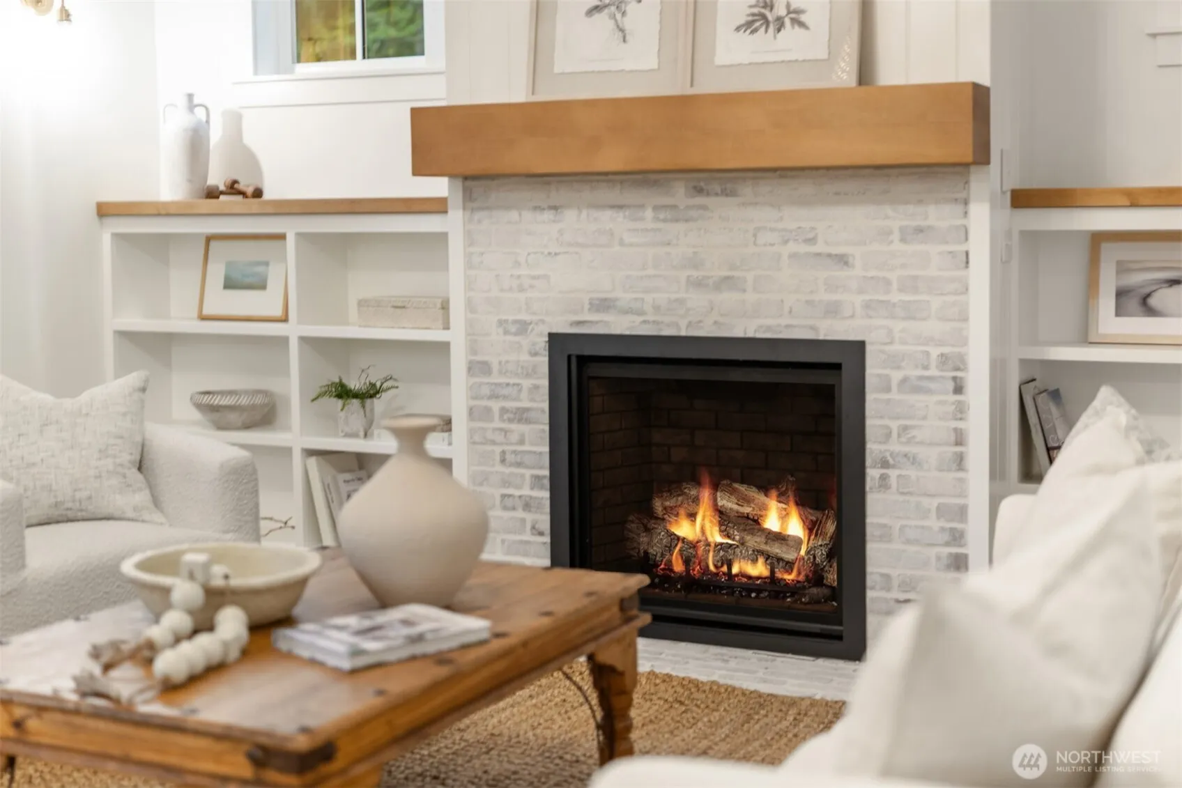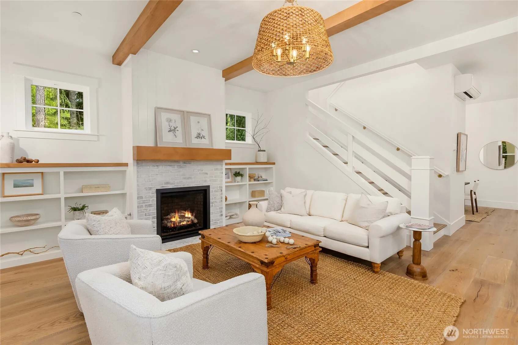 Crafted by Thad Van Winkle, this exceptional new construction white farmhouse is just moments from Battle Point Park and offers refined living with a focus on quality and thoughtful design. Inside, European distressed oak flooring runs throughout, paired with 10’ ceilings and 8’ five-panel solid doors that enhance the home’s bright, open-concept layout. The kitchen is designed to impress, featuring Thermador stainless appliances, a 48” range, 42” refrigerator, wine fridge, beverage drawer, and a generous walk-in pantry with custom cabinetry and prep sink. An 8-foot island with a 3” solid alder top anchors the space and invites gathering. The main level includes a primary suite and a dedicated office. Upstairs, a second primary suite is joined by three additional bedrooms, a large bonus room, and a convenient laundry area. Comfort extends year-round with a propane fireplace, infrared patio heaters in the breezeway, and a whole-house generator. A two-car garage with finished space above and a full bath offers flexibility for guests, a home office, or studio. Exceptional craftsmanship and carefully selected finishes complete this standout Bainbridge Island home, where timeless style meets modern living.