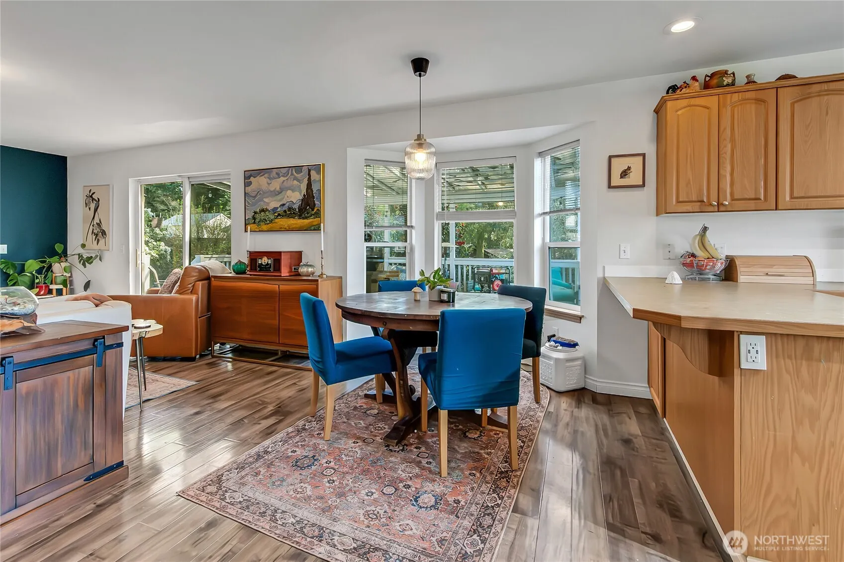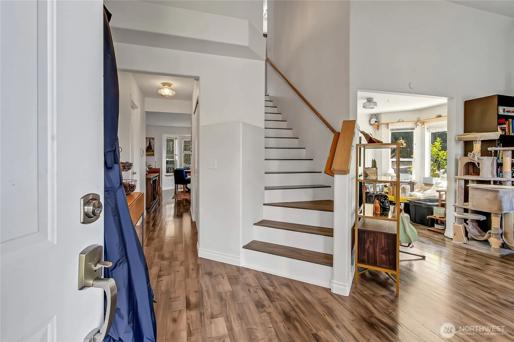 3 bed, 2.5 bath home with 1,909 sq ft in Bonney Lake’s Russellwood community. Entry opens to living room with adjacent flex room suitable for office or dining use. Open-concept kitchen and family room with laminate and carpet flooring and a gas fireplace. Kitchen includes eating bar, wall-to-wall pantry, new oven, and direct flow to main living area. Laundry room located off family room. Upper level features primary suite with walk-in closet and remodeled bath with double vanity and walk-in shower with glass surround, plus two additional bedrooms. Hall bath partially remodeled. New water heater and home is wired for generator. All appliances, including washer and dryer, are included. Attached 2-car garage with extended driveway, additional gravel parking, and designated RV parking. Fully fenced backyard with covered deck spanning the rear of the home. Landscaped front yard with mature plantings. Located approx. 1–2 mi to Hwy 410, 2 mi to Fred Meyer, and 2–3 mi to Lake Tapps and Allan Yorke Park. Russellwood community includes playground and basketball area.