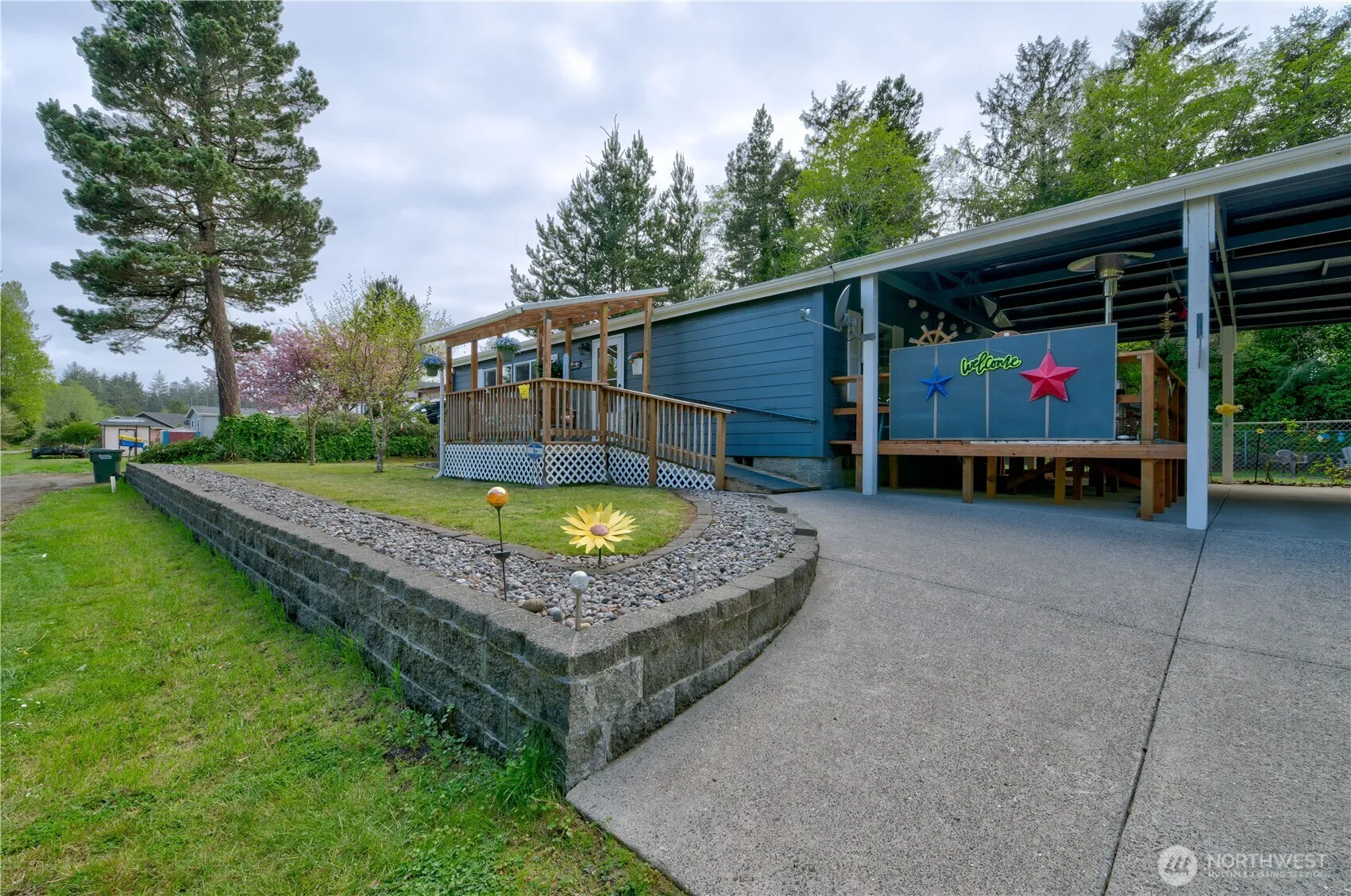 This lovingly and well maintained 2 bedroom 2 bath home features a split floor plan and comfortably sized living area. The ensuite primary bedroom is generous to allow for a king size bed and furniture. Outside you’ll find this home sits on an elevated 1/3 acre featuring a fully fenced backyard with outbuilding. Additionally, there is a 12’x18′ shed with power, storage and workspace. The concrete driveway features a large 2 bay carport with an ample 24’x12′ deck that leads into the utility room. The front entry is easy access utilizing a ramp. Tucked away in an quiet area, yet only just over a mile north of shopping in Ocean Park suitable for full or part time living.