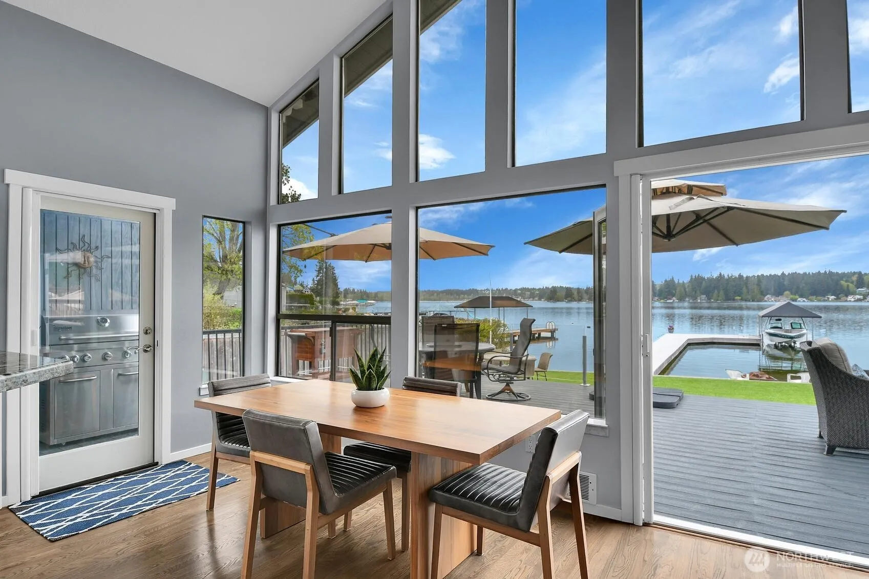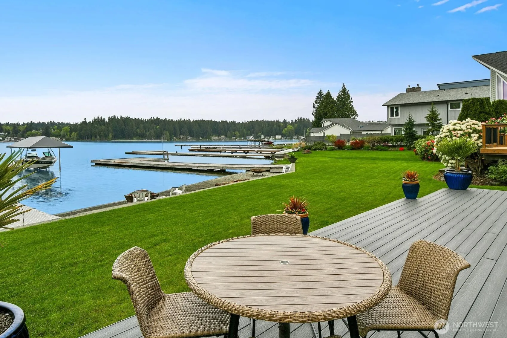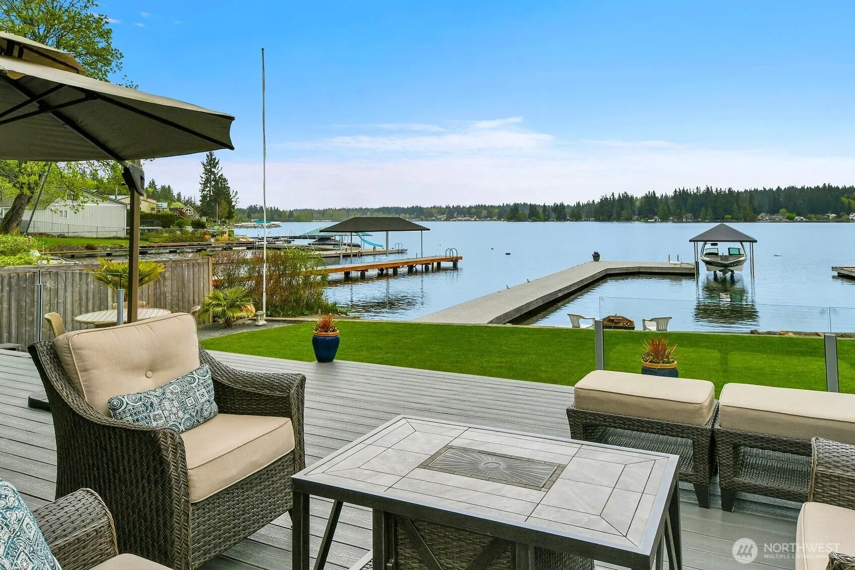 Dreaming of lakefront living on Lake Goodwin? If so, here’s your chance. Featuring 60ft of low-bank waterfront, a new dock trimmed in Ironwood with eco-friendly decking and a solar Basta boat lift with plenty of dock space for a PWC (dock has wips), guest watercraft, and swimming, you’ll enjoy the ease and comfort of stepping onto your boat to indulge in all the lake’s opportunities. The home features a Trex deck with 3 sitting areas, a refined main living with floor-to-ceiling windows, marble fireplace surround & sills, granite kitchen countertops with new pull-outs in lower cabinets, new Subzero fridge + Bosch appliances makes living a pleasure at every turn. The primary home has 3 bed 2.5 baths (1,505 sqft) with a prim. bed with private on-suite, beautiful built-ins, and 2 guest beds with loft area. In addition, the 1 bed 1 bath detached living space (434 sqft) gives privacy & flexibility for guests. The spacious 3 car garage (1,128 sgft) is boat ready and the lot has RV parking, guest parking with additional storage behind garage, and manicured lawn to take advantage of all the lot has to offer. This home & property are set to impress and will offer many years of lakefront enjoyment so don’t wait to achieve your dreams.