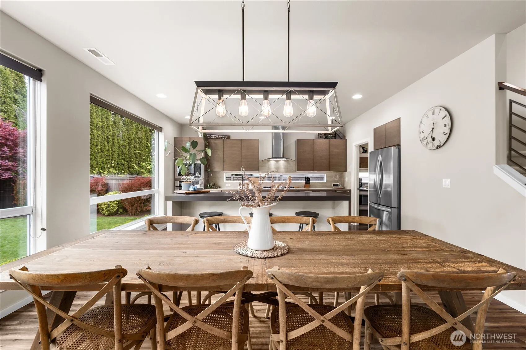 Wake up each morning to breathtaking mountain views in this stunning, 3,012 sq. ft. home in Si View Estates. On the main floor you’ll find the family room with cozy gas fireplace, open-concept kitchen & dining spaces great for hosting, 1/2 bath for guests, & a den with custom built-ins & French doors. The kitchen is a chef’s dream, with quartz counters, SS appliances, & a pantry with custom shelving. Beautiful laminate wood floors & new carpet & interior paint make this home move-in ready. Upstairs, 4 beds, 2 baths, a versatile loft, & a large laundry room provide comfort & space for all. The luxurious primary suite features a custom walk-in closet & spa-like 5-piece bath with a deep-soaking tub. Step outside on the covered deck & into the spacious & flat, fully-fenced yard. Mature landscaping creates a peaceful & picturesque setting. The extended deck is designed for year-round enjoyment with its own gas fireplace & electric heater. On the stamped-concrete patio, unwind in the 8-person hot tub or take advantage of the detached studio, a flexible space you may use for anything! Home office, exercise, art or something else? Complete with a mini-split for heat/AC & LVP floors, it’s perfect for any of your needs. Additional highlights include a 3-car garage, a generator capable of powering the whole home, EV charging, & a sought-after neighborhood with paved paths to downtown, nearby trails, & parks. Located within top-rated Sno-Valley Schools. Don’t miss this must-see home!