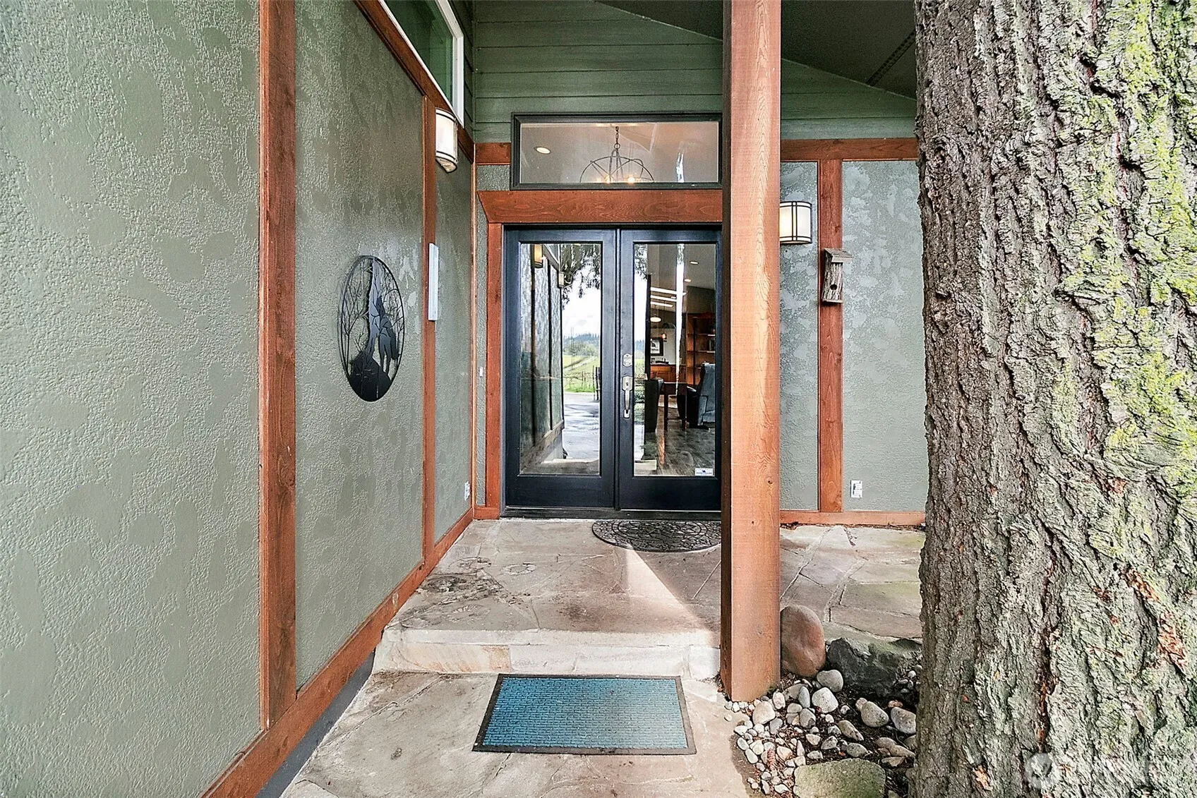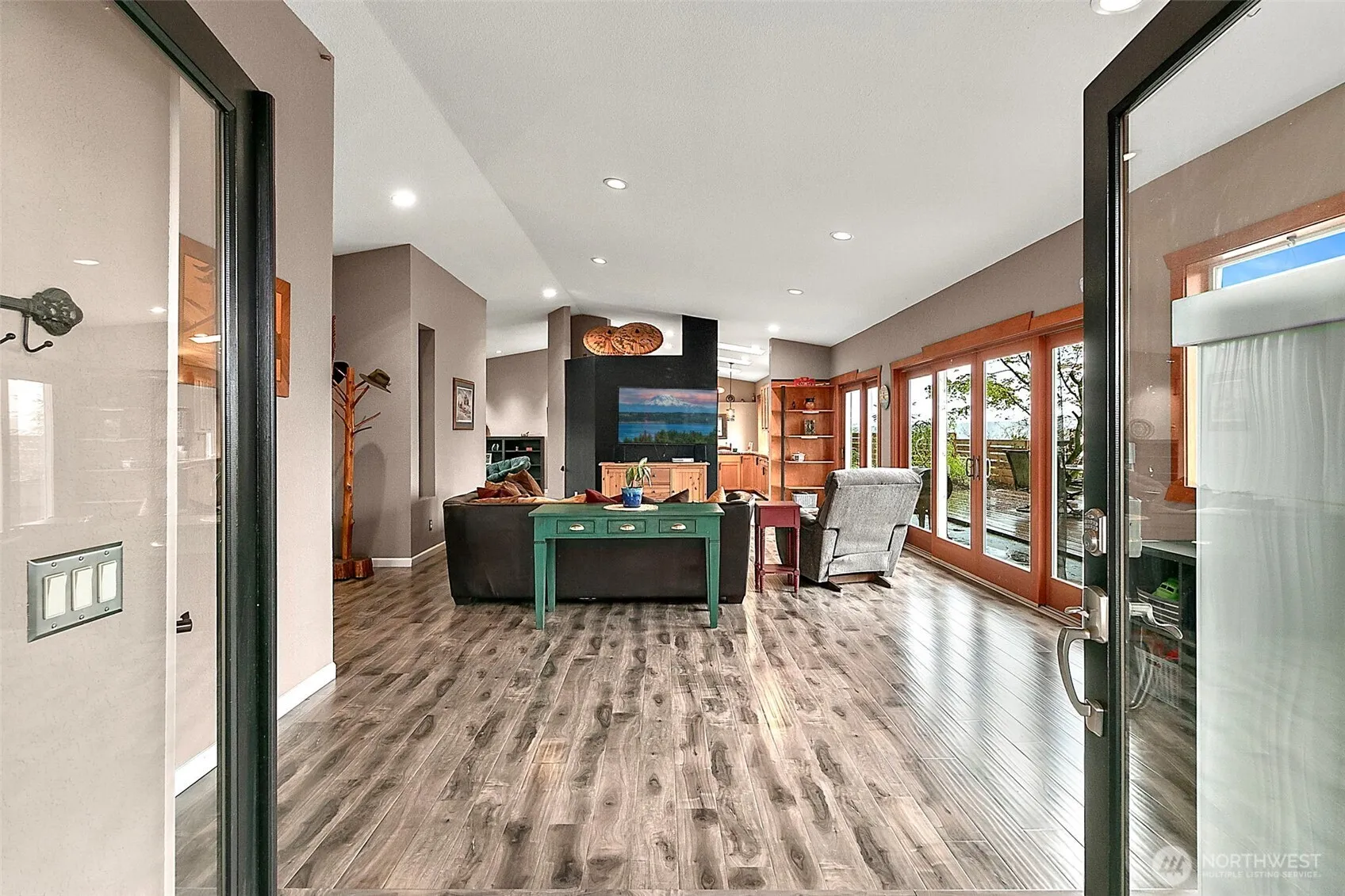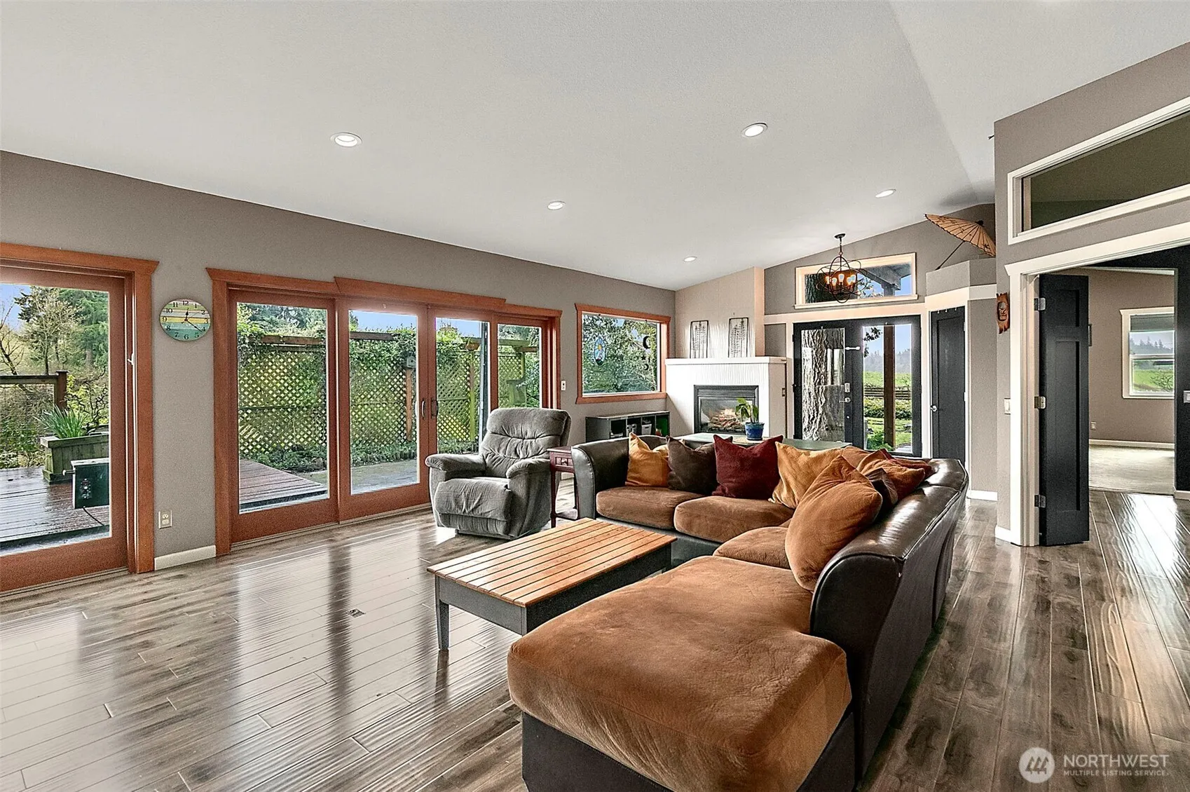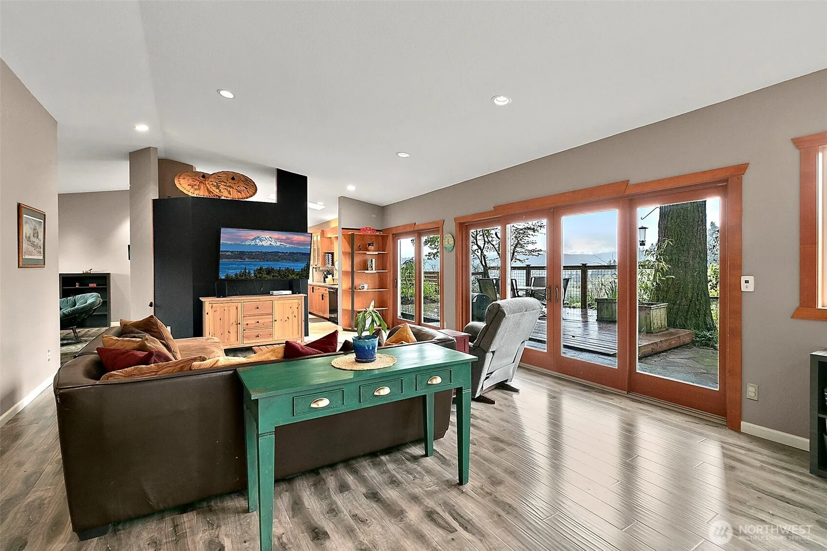 Private Enumclaw retreat on just shy of an acre with river and territorial views! This 3-bed, 2-bath home offers 2,310 sq ft with an open-concept layout, abundant natural light, and great indoor/outdoor flow. Spacious kitchen features warm wood cabinetry and opens to the main living area, ideal for entertaining. Bedrooms are generously sized, offering comfort and flexibility. The ensuite primary bath is well-equipped for everyday ease. Enjoy two patios overlooking a peaceful, secluded setting. The detached garage offers excellent potential for a DADU or mother-in-law suite. Plenty of usable land with room to garden, play, or expand. Quiet, private feel while still convenient to town amenities.