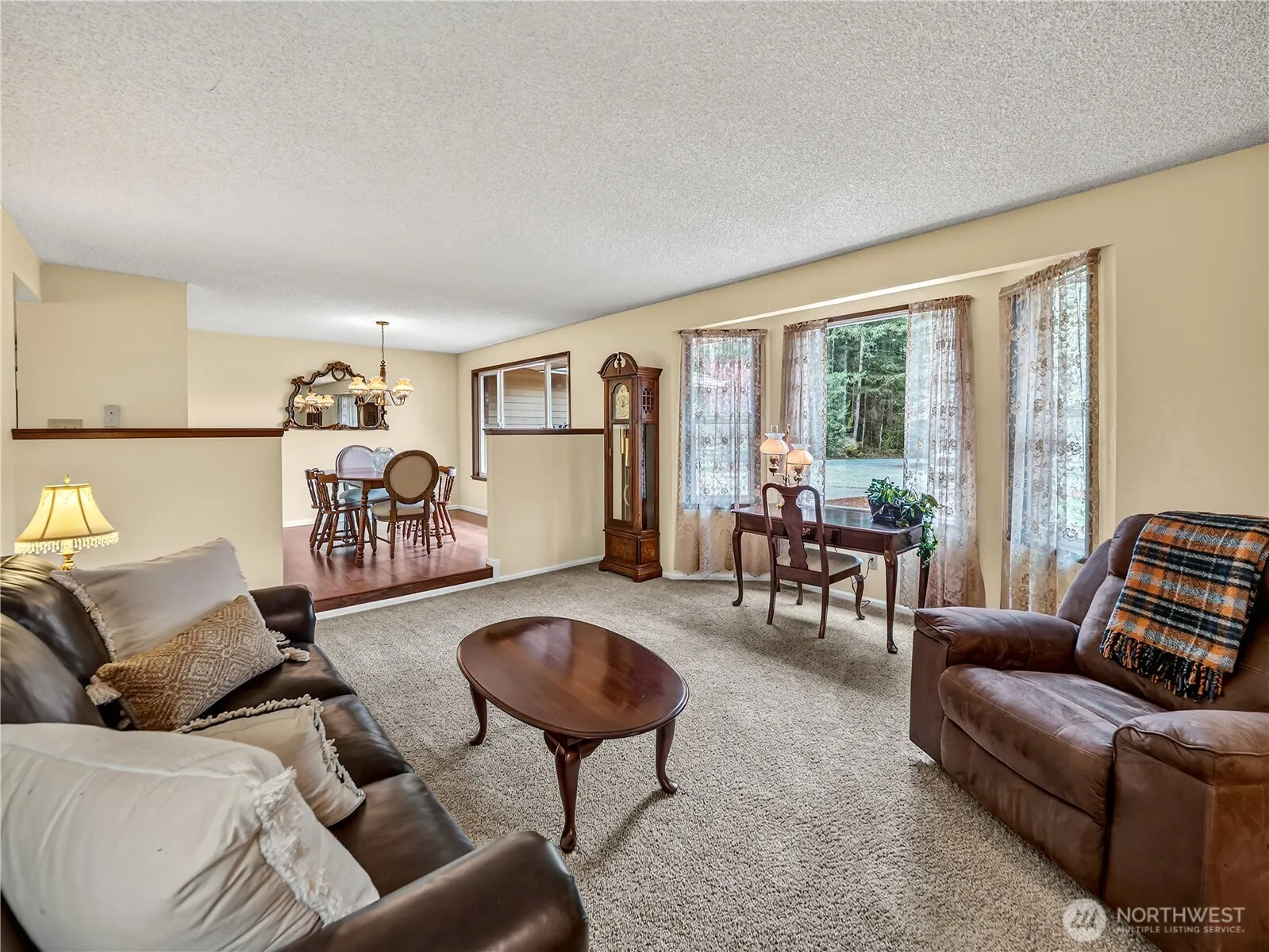 Nestled on 4.67 sprawling, fenced and cross-fenced acres, this inviting 4-bedroom plus office (or 5th bedroom), 2.75-bathroom country home offers comfortable living and plenty of room to roam. With 2,570 SF of thoughtfully designed space, and 390+ feet of Deep Creek frontage—perfect for tranquil mornings or fishing afternoons. A 36′ x 48′ shop for all your projects, w/ power, water, loft storage, and a cattle feed rack. 16′ x 40′ covered RV bay and a 12′ x 20′ boat bay provide abundant storage for all your vehicles. Inside, a cozy family room with a wood stove and brick hearth sits just off the kitchen, inviting gatherings and warmth on chilly evenings. Step out the sliding door to a large Trex deck ideal for outdoor seating, BBQing and entertaining under wide open skies. Formal living and dining rooms offer spaces for hosting holiday dinners. The huge primary bedroom features a walk-in closet and sliding glass doors to the backyard, and a 5-piece bath with tile floors is your private retreat. Three additional guest bedrooms are comfortably sized, sharing a full bath with dual vanities, while the office/5th bedroom has an adjacent 3/4 guest bath. A laundry and mechanical room connected to the attached 2-car garage. Plum, apple, cherry trees and blueberries dot the landscape for seasonal enjoyment & canning opportunity. Forced-air furnace with heat pump and AC ensures year-round comfort, making this a perfect place to call home.