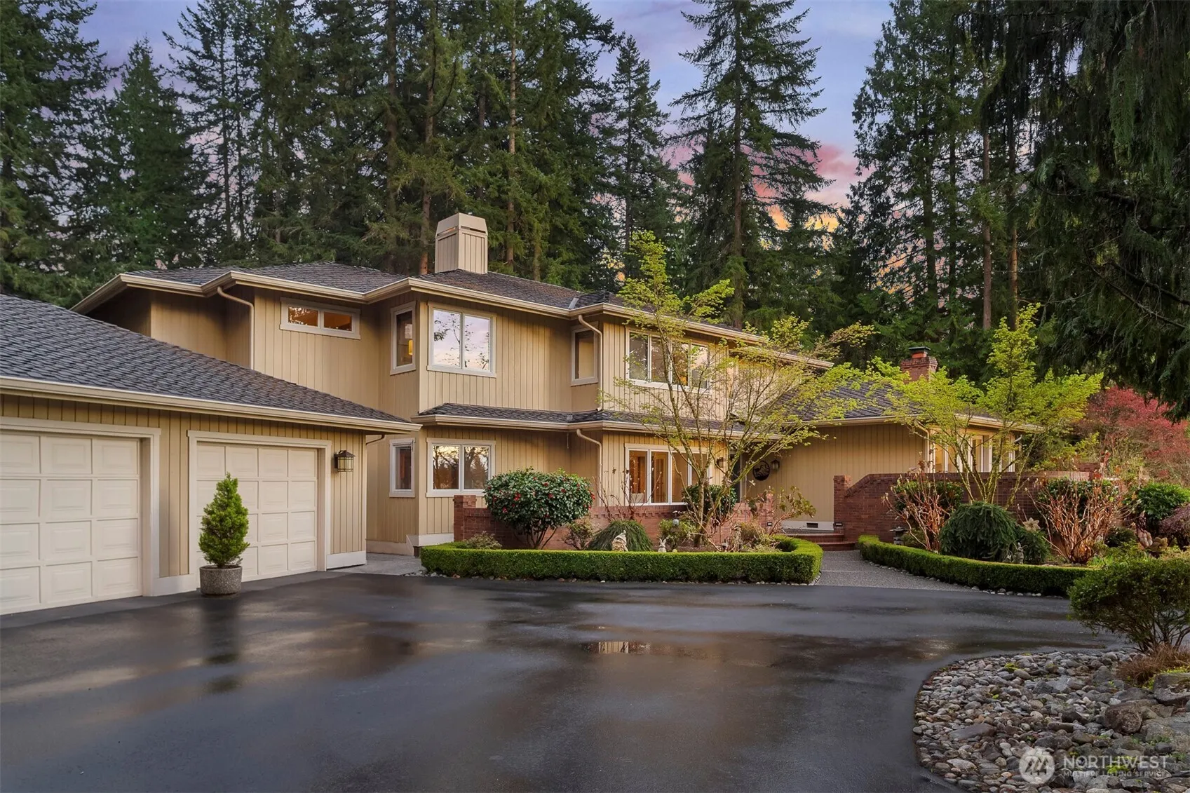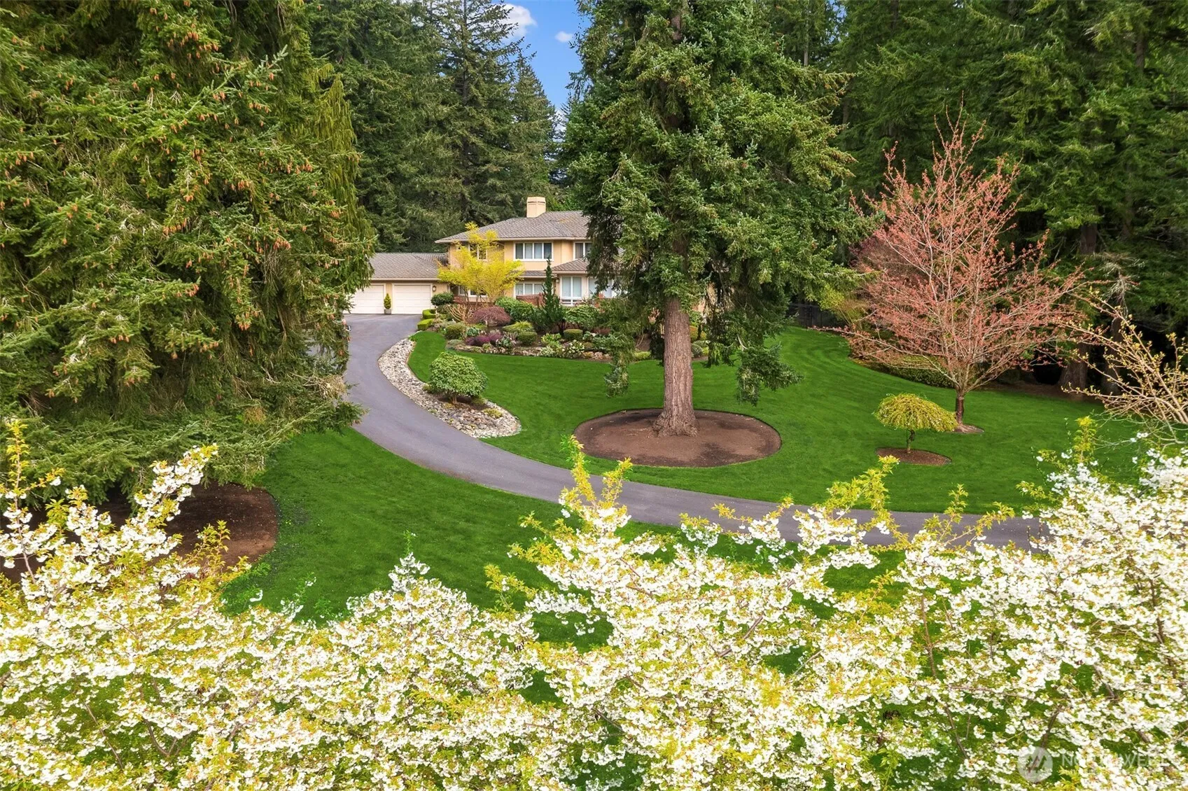 Once-in-a-lifetime estate property in an incredibly convenient location between Union Hill and Novelty Hill, just 10 minutes to Downtown Redmond. Meander down the private drive and immediately feel the peace, privacy and tranquility of 4.5 acres with your own private pond, stream, manicured grounds and abundant wildlife. Eagles soar overhead, birds sing, a bubbling creek winds through the property, and mature evergreens create a setting that feels worlds away. Past the cherry blossoms and pasture, the home comes into view with a circular drive, 3-car garage and the unmistakable presence of a custom one-owner residence built with timeless quality. Inside, a dramatic double-height entry, elegant staircase and rich oak millwork set the tone. The home offers all the spaces you are looking for: family room with heated travertine floors, fireplace and deck access, updated kitchen with Sub-Zero refrigerator, double ovens and informal dining, game room, utility room, formal living room, and a mahogany-clad office. Multiple main-floor rooms, paired with two nearby 3/4 baths, offer excellent flexibility for a guest suite or 4th bedroom. Upstairs are 3 spacious bedrooms all with ensuite baths, each with views of the pond or pasture. The primary suite is a true retreat with fireplace, generous walk-in closet and updated 5-piece bath. A rare opportunity for the buyer who values land, privacy and enduring quality over fleeting trends.