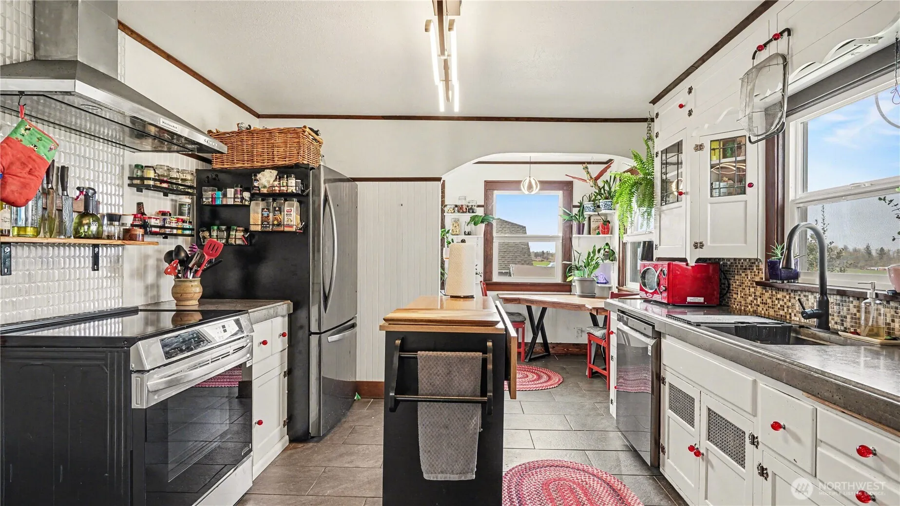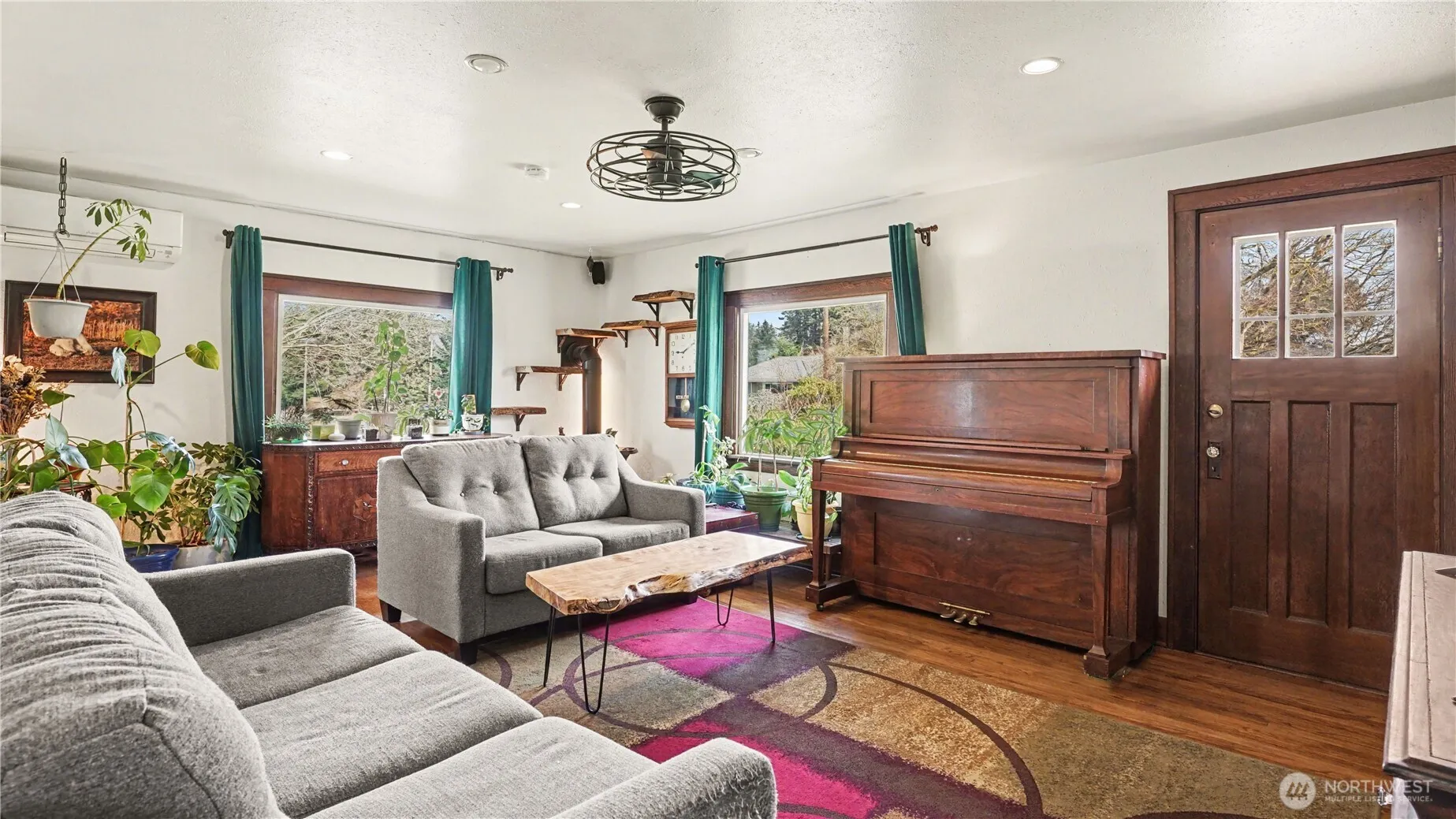 Welcome to this charming 3-bedroom, 2-bath home with a fully finished basement, full of character and timeless appeal. A welcoming walkway leads to the cozy front porch, setting the stage for the warmth and charm found throughout the home, complete with Mt. Rainier views. Inside, you’ll find two spacious main-floor bedrooms with new flooring, a full bathroom, and a light-filled living room that flows seamlessly into the kitchen, accented by beautiful wooden shutters. Original hardwood floors, classic archways, and thoughtful updates—including modern A/C—blend historic charm with everyday comfort. The fully finished basement expands the living space with an additional bedroom, a den or office, and a generous family or rec room—perfect for guests, hobbies, or entertaining. Outside, the property truly shines. Situated on approximately 1/3 of an acre, the yard is surrounded by mature landscaping and features a garden area, fruit trees, a patio, a large grassy lawn, and plenty of space to relax or play. A detached two-car garage adds convenience and extra storage. Located in the charming city of Enumclaw, this home offers the opportunity to enjoy small-town living while being close to local shops, dining, parks, and all the wonderful amenities the community has to offer.