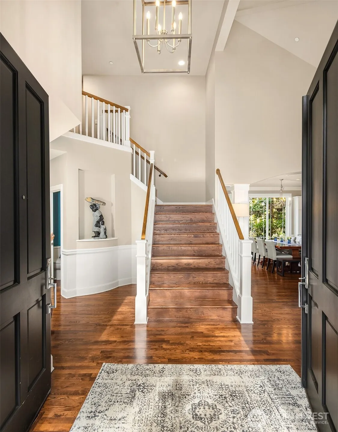 Set on a private cul de sac backing to protected wetlands with trail access to the water, this extensively updated residence offers a rare blend of natural beauty and refined, move in ready living. Surrounded by mature evergreens, the setting provides exceptional privacy while remaining close to the best of the Eastside. Inside, soaring vaulted ceilings and expansive windows fill the home with natural light, highlighting a cohesive palette of updated hardwoods, crisp white millwork, designer lighting, and curated hardware. The fully renovated kitchen serves as a central gathering space, featuring granite surfaces, shaker cabinetry, stainless steel appliances, and a Sub Zero refrigerator, opening seamlessly to generous living and dining areas anchored by a tiled gas fireplace with custom built ins. A flexible main floor den adds functionality for work or retreat, while the primary suite offers a quiet escape with a beautifully updated bath including custom cabinetry and a freestanding soaking tub. Additional baths reflect the same timeless finishes. The fully fenced backyard creates a private outdoor setting with garden beds, fire pit seating, and mature landscaping, all framed by a tranquil natural backdrop. With new interior and exterior paint, cement board siding, and extensive updates throughout, this home presents a rare opportunity to enjoy privacy, quality, and connection to nature in a premier Eastside location.