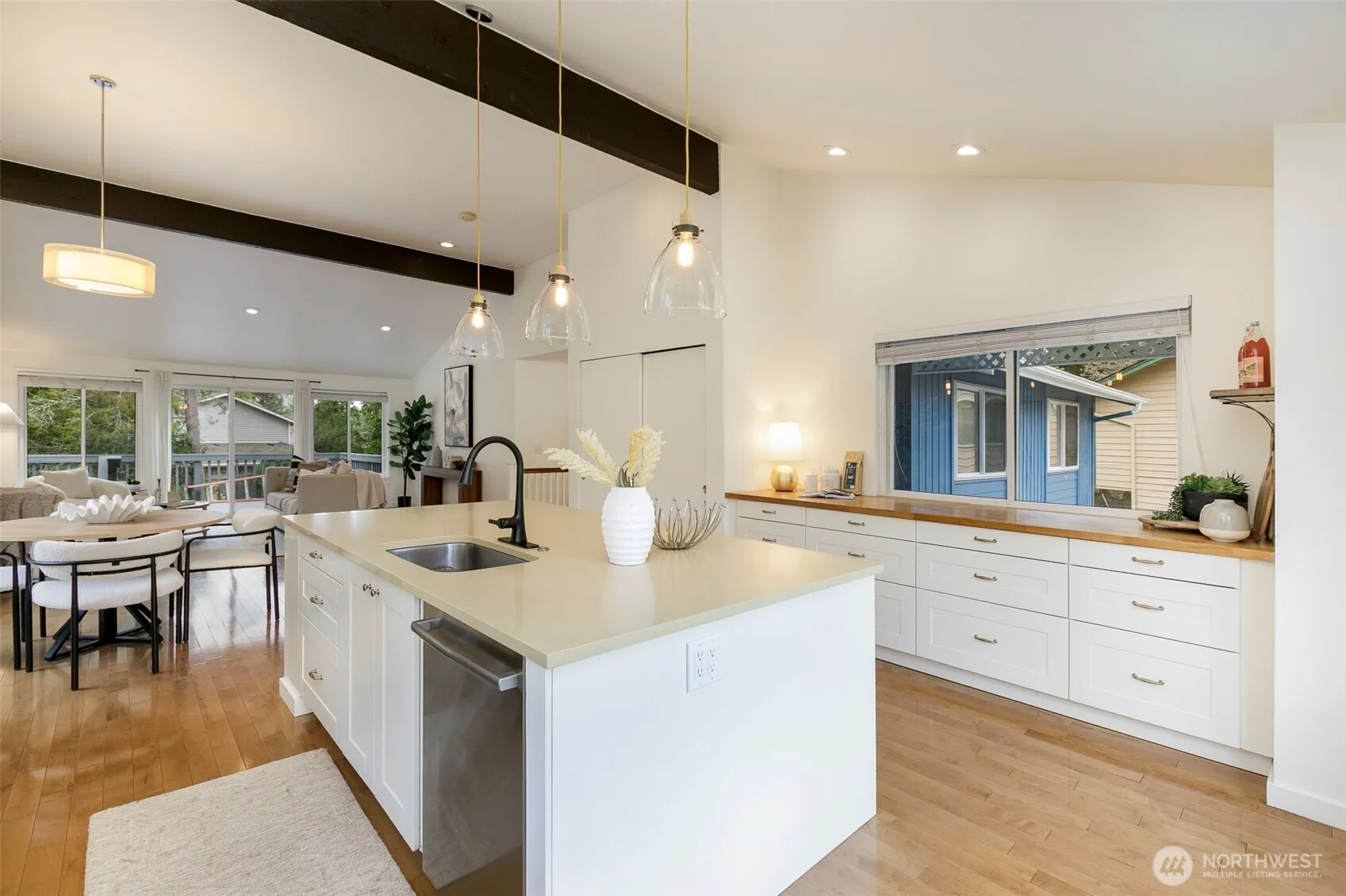 Bright, open, and beautifully maintained home in sought-after Education Hill, nestled on a quiet cul-de-sac with a private, level, fully fenced lot. The spacious layout is filled with natural light and designed for both everyday living and entertaining. Enjoy outdoor living on the large main deck, patio, and second deck with a charming gazebo, ideal for gatherings or relaxing evenings. The modern kitchen is a true centerpiece, featuring a large island, sleek cabinetry, stainless steel appliances, and generous counter space with ample storage. Kitchen, living and dining rooms all open with high ceilings. Four well-sized bedrooms are conveniently located on the same floor. Durable hardwood flooring runs through high-traffic areas, complemented by new carpet in the main-floor bedrooms. Bathrooms have been thoughtfully remodeled with updated finishes.The lower level offers excellent flexibility with a fifth bedroom, a large family/bonus room, laundry area, and a ¾ bath, perfect for guests, work-from-home space, or multi-generational living. An attached two-car garage adds convenience. Newly painted exterior, back yard turf for year round green with low maintenance and central A/C. Located in the highly rated Lake Washington School District, and just minutes from parks, trails, shopping centers and transit.