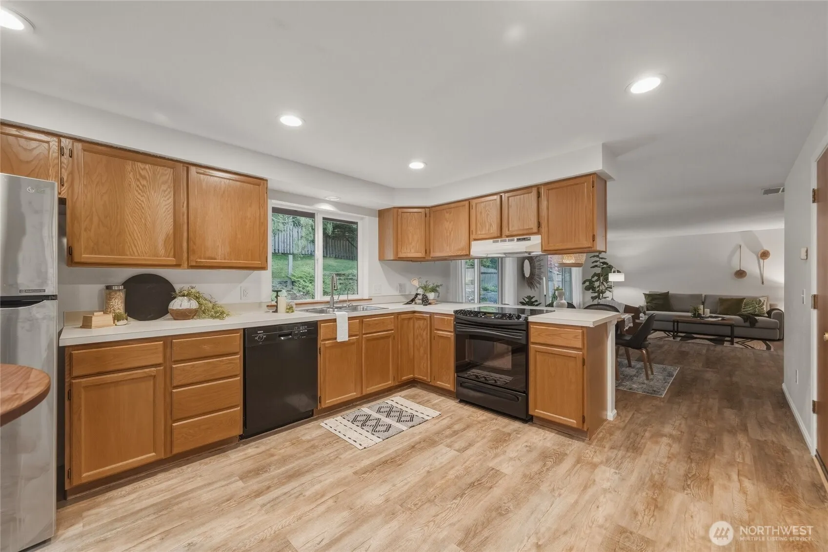 Tucked into a quiet community with a greenbelt right out your back gate, this thoughtfully updated single-level home is move-in ready — the heavy lifting has already been done.Major updates include new siding, exterior paint, gutters, water heater, furnace, insulation, and windows, plus fresh flooring throughout, interior paint, and updated lighting fixtures. Even the washer and dryer are included.Enjoy two outdoor living spaces — front and back decks perfect for relaxing or entertaining — plus a fenced, terraced backyard with direct gate access to the greenbelt. The garage features a built-in office space with room remaining for one car and generous storage.This 3-bedroom, 2-bath home sits in an unbeatable location just minutes from Barkley Village, local restaurants, parks, and the trail system, with quick access to I-5. Comfort, convenience, and nature — all in one.