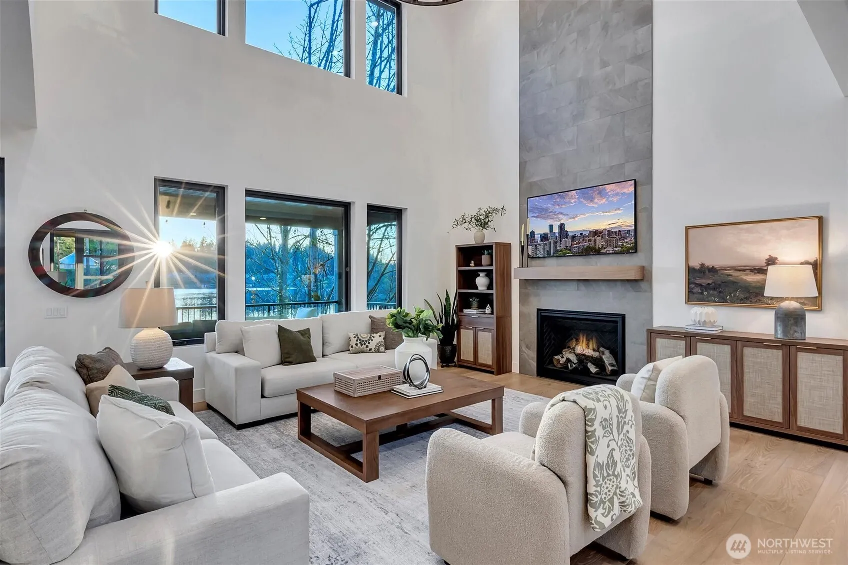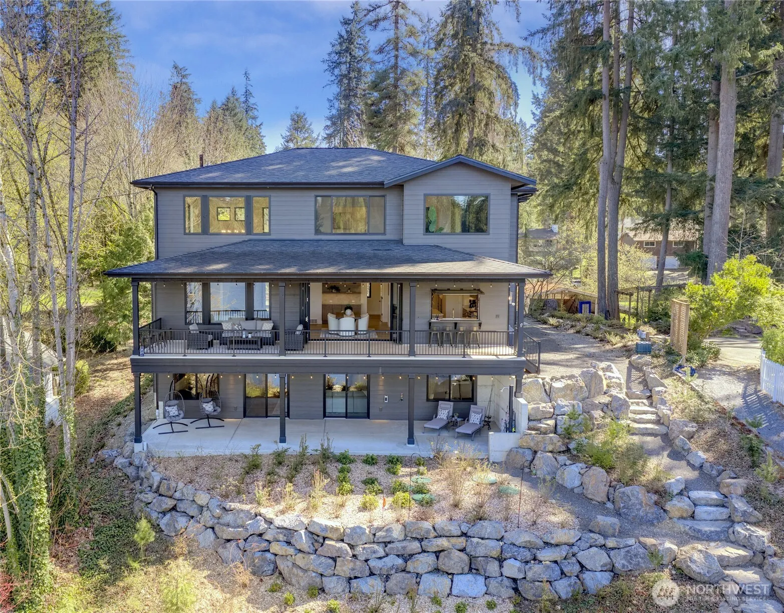 Step into a luxurious residence artfully crafted by acclaimed builder, Devon Hughes, where nearly 5,000 sf of modern elegance, meets the tranquility of charming Cottage Lake. Built in 2024, this home offers a rare blend of refined craftsmanship, premier finishes and a lifestyle immersed in nature, just minutes to top-rated schools, easy freeway access, and all that the vibrant Woodinville Wine Country has to offer. The 2/3 acre waterfront property has a private dock from which to paddleboard, swim or catch fish for your dinner. The evening sunsets are epic as the colors glisten on the water. Sip your morning coffee on the vast deck encompassing the entire rear of the home and ready for heat lamps. A built-in bar area makes for easy entertaining and the gas BBQ stays with the home. The open-concept living spaces flow seamlessly into the stunning kitchen with white oak cabinetry and Taj Mahal Quartzite counters. The spacious living room with two-story ceiling, opens through La Cantina accordion doors to the deck, inviting summer evenings in. The primary suite on the upper floor has glorious views of Cottage Lake and the stunning bath with heated tile floors, features a massive walk-in closet with charming window inviting natural light in. Two additional bedrooms, a bonus room and full bath complete the upper level. The lower level offers a massive rec room, den with double doors, huge storage and 3/4 bath. Welcome home to a beautiful lifestyle on Cottage Lake!