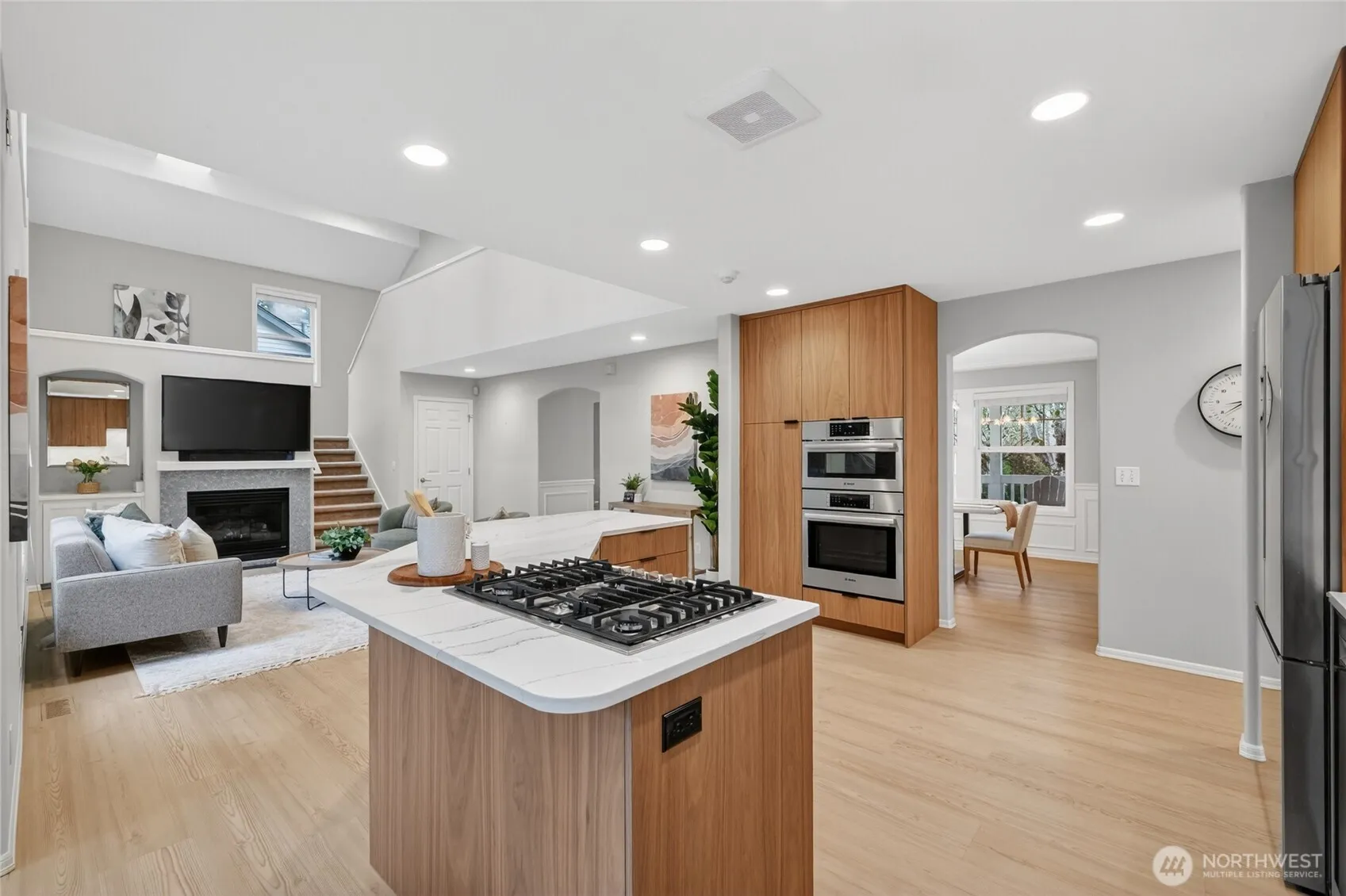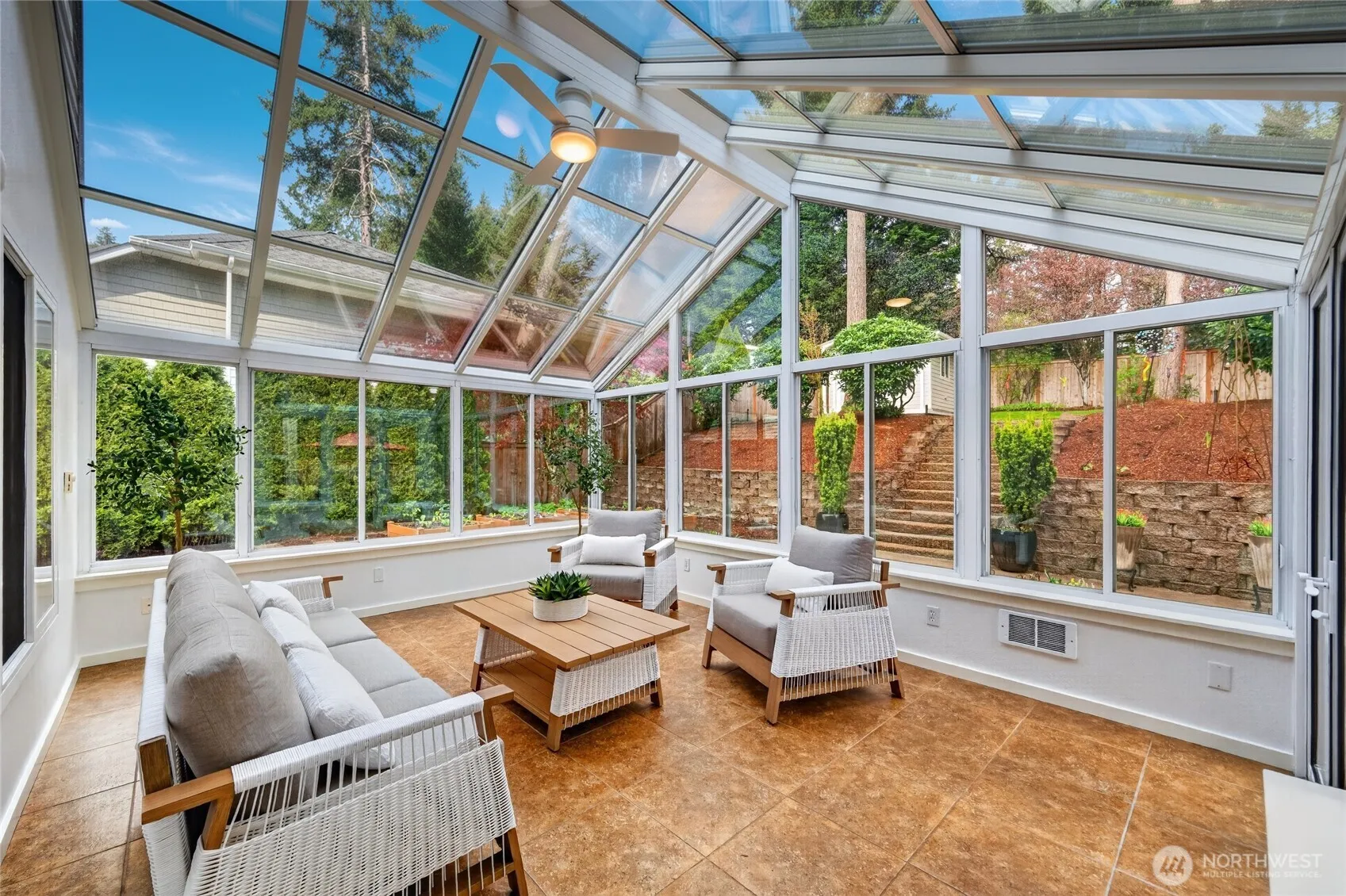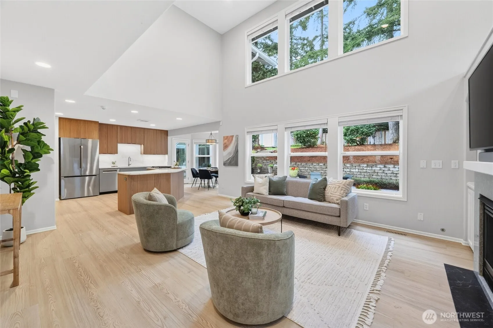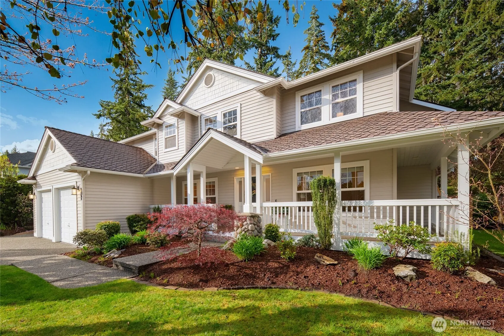 Impeccably maintained and effortlessly elegant, this exceptional 5-bedroom, 2.75 bath home offers a rare dual primary suite design, including a main floor retreat ideal for multi-generational living or hosting in comfort. A beautifully remodeled kitchen serves as the heart of the home, showcasing stunning custom cabinetry, refined finishes, and generous storage, all complemented by soaring vaulted ceilings filled with natural light. A bonus 300 sq ft sunroom, not included in listed sq ft, extends the living space, artfully blending indoor and outdoor comfort making it an ideal setting for relaxing, enjoying the surrounding scenery, or cultivating a thriving collection of plants year-round. Fresh interior and exterior paint enhance the home’s pristine, move-in-ready condition. Set on a private lot, the property features a 3-car garage with sleek epoxy floors and exceptional storage throughout. Located just a six-minute walk to Mill Creek Town Center, nearby nature preserve, and scenic trails, the home also enjoys access to the renowned Mill Creek Community Association amenities which include over 160 acres of resident-only open space, more than 16 miles of trails, 21 parks, 12 playgrounds, and a serene 120 acre private nature preserve. Moments from Mill Creek Country Club and conveniently located, this home offers an exceptional blend of luxury, community, and walkable lifestyle in one of the area’s most desirable settings.