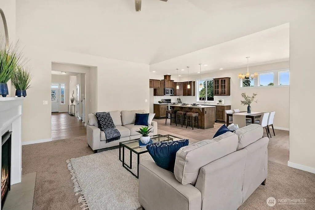 Skyview Estates, featuring the highly respected work of Rob Rice Homes. Offering a distinct main floor primary, the Linden plan encompasses 2752 +/- square feet with 3 bedrooms, a loft, den and 2.75 baths. The main level showcases a beautifully designed kitchen with quartz countertops w/full tile splash, Graphite Maple shaker cabinetry, a gas range, double oven and a spacious walk-in pantry, opening gracefully to the dining area for both everyday living and effortless entertaining. Upper level showcases a large loft, full bath, bedroom and flex/office space. Engineered hardwood flooring flows through the entry, kitchen, and dining spaces, with elevated finishes and more quartz surfaces throughout. Step outside to a covered patio overlooking a fully landscaped and fenced yard, creating a private and inviting extension of the home. Energy efficient with solar panels, heat pump, and electric hybrid hot water tank. Crafted with quality, this home is positioned near the freeway, Costco, shopping, eateries and Tumwater Schools. Estimated completion date is 06.01.2026. Photos used are either virtually staged and/or of a similar model previously built.