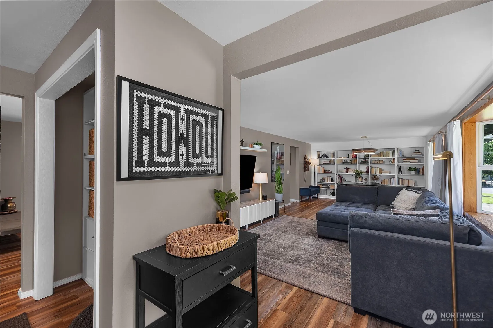 Welcome home! Tucked at the end of a quiet cul-de-sac, your beautifully updated 3-bedroom retreat sits on a private .27-acre lot that truly feels like your own escape. From the moment you step inside, you’re greeted with warmth and style—new Luxury Vinyl Plank flooring seamlessly runs throughout, two large living spaces invite a multitude of uses, while a cozy gas fireplace invites you to slow down & cozy up – all framed by French doors directly off the kitchen and fireplace that seamlessly connect indoor and outdoor living. Your kitchen is bathed in natural light from multiple light sources & outfitted with newer appliances, while both bathrooms have been tastefully refreshed—including a brand new, no step, guest shower. Thoughtful upgrades are found throughout, with custom built-ins, new millwork, and elegant wainscoting adding character and charm in every room. Stepping outside you’ll find a true oasis—a brand new oversized covered pergola creates the ultimate year-round indoor/outdoor living space overlooking your fully fenced backyard and lush greenery for exceptional privacy. Enjoy all new landscaping and a brand new fence, making the outdoor space just as turnkey as the interior. Major system upgrades include a new roof, furnace, heat pump (AC), newer insulation — your home is truly a move-in ready! All just minutes to I-5, JBLM, schools, and local amenities—this is the one that checks every box!