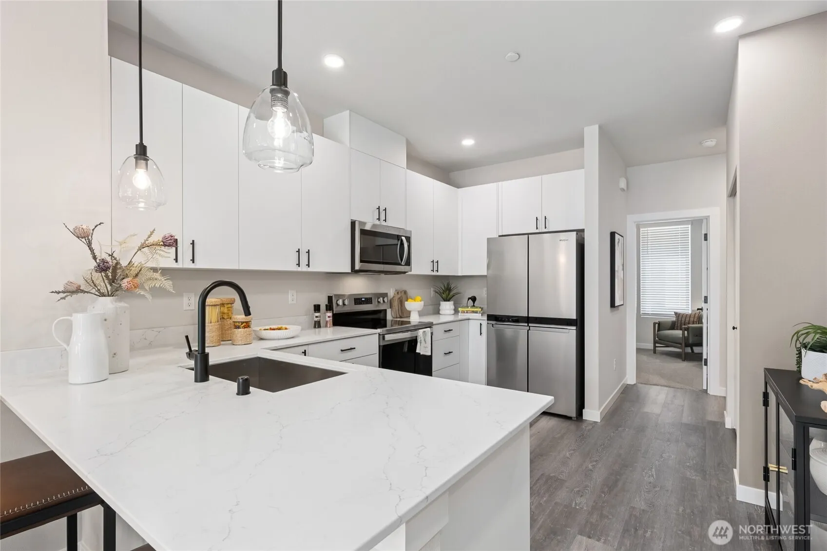 Grand Opening Saturday, 4/24! Welcome to The Alder, D.R. Horton’s newest community, conveniently located in Lynnwood! The Capri plan with flex space offers 3 bedrooms plus extra finished garage living space/den with attached full bathroom. Perfect for a home office, home gym, or rec room. Upstairs, the main floor boasts soaring ceilings & extra-large windows providing ample light throughout. A thoughtfully designed kitchen offers breakfast bar seating overlooking the dining area and great room. A main floor bedroom and 3/4 bathroom is perfect for guests. The spacious primary suite upstairs offers an ensuite bath plus walk in closet. The 3rd bedroom is sizeable as well with plenty of closet space. A full bathroom & utility room complete the upper floor. Don’t miss the community park and sports court! Offering builder incentive to be used towards closings costs/options with use of preferred lender, DHI Mortgage. Inquire today for additional information. Buyers must register their broker on first visit.