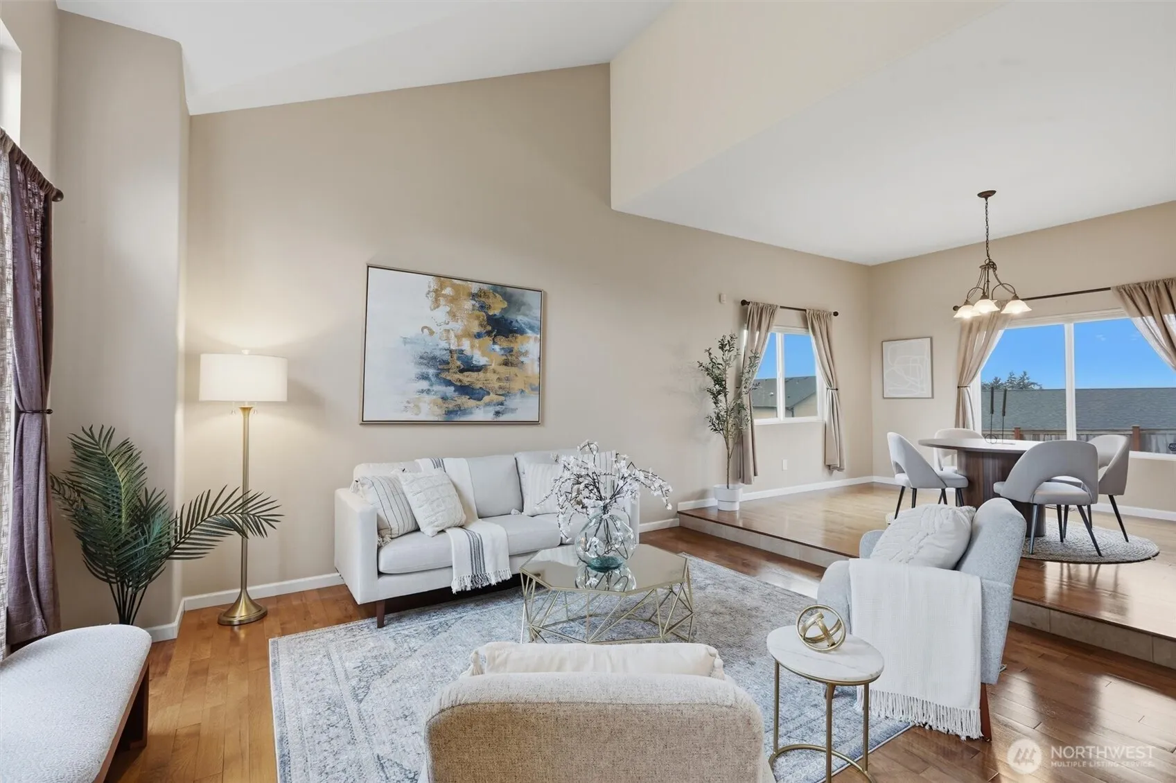 Tucked away on a quiet cul-de-sac in the highly sought-after Northpointe community, this beautifully refreshed home offers the perfect blend of comfort, style, and everyday living. From the moment you arrive, you’ll notice the crisp new Hardiplank siding, fresh exterior paint, modern lighting, updated gutters, and a sleek new garage door—creating standout curb appeal that sets the tone for what’s inside—backed by over $100,000 in recent exterior upgrades by the seller.Step into a light-filled interior where vaulted ceilings and gleaming hardwood floors create an inviting, airy feel. The spacious living room flows effortlessly into the dining area, where large windows frame serene backyard views—perfect for everyday moments and entertaining alike. The heart of the home continues into a cozy family room with a gas fireplace, ideal for relaxing evenings. Upstairs, the primary suite offers a peaceful retreat with its own ¾ bath and walk-in closet, while three additional bedrooms provide flexibility for guests, work-from-home space, or hobbies. Outdoor living truly shines here. Enjoy morning coffee or evening gatherings on the expansive new back deck with built-in seating, all while taking in territorial views. A charming front deck, newly fenced yard, and manicured landscaping complete the private outdoor setting.Easy access to I-5 and Hwy 9 makes commuting a breeze, while you’re just minutes from shopping, dining, and Tulalip Casino. A 1-year home warranty is included.