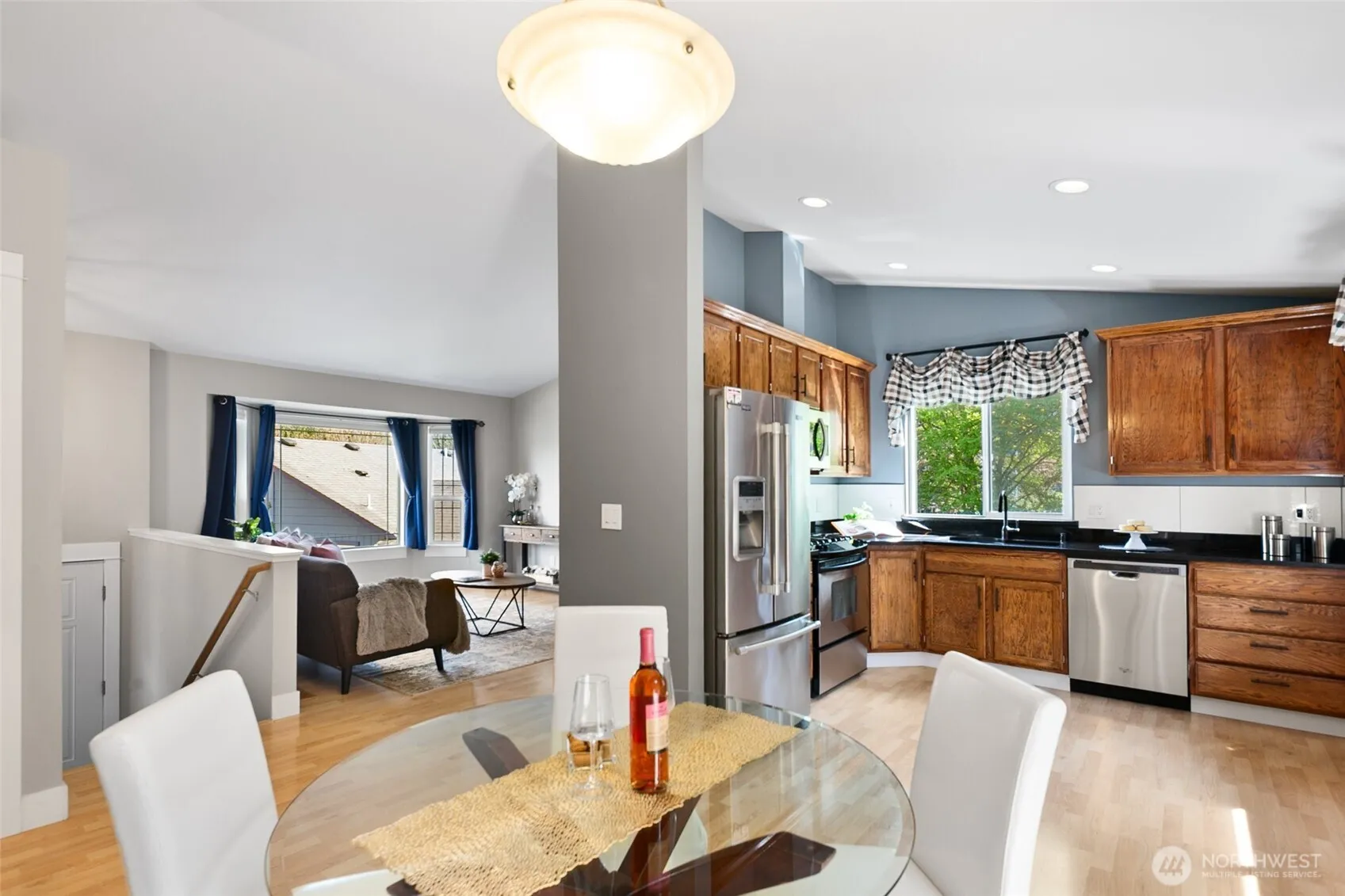 Wonderfully maintained home featuring an open-concept living and dining area that flows seamlessly into a well-appointed kitchen with stainless steel appliances and a custom pantry, ideal for everyday living and entertaining. The dining space offers a glass slider to the upper deck—perfect for summer BBQs or relaxing evenings outdoors. The upper level includes a spacious primary bedroom with ensuite bath, plus two additional bedrooms and a full bath. Downstairs, the finished lower level provides a versatile family room or flex space, laundry room & half bathroom, with direct access to the fenced backyard, ready for outdoor enjoyment. A two-car garage and generous off-street parking add convenience. Recent updates include roof (2020); furnace, AC, tankless water heater, and upgraded electrical panel with transfer switch (2022); R-49 attic insulation (2022); new fencing including posts (2024/2025); exterior paint (2025); and partial interior paint (2024/2025). Ready to be moved in and enjoyed!