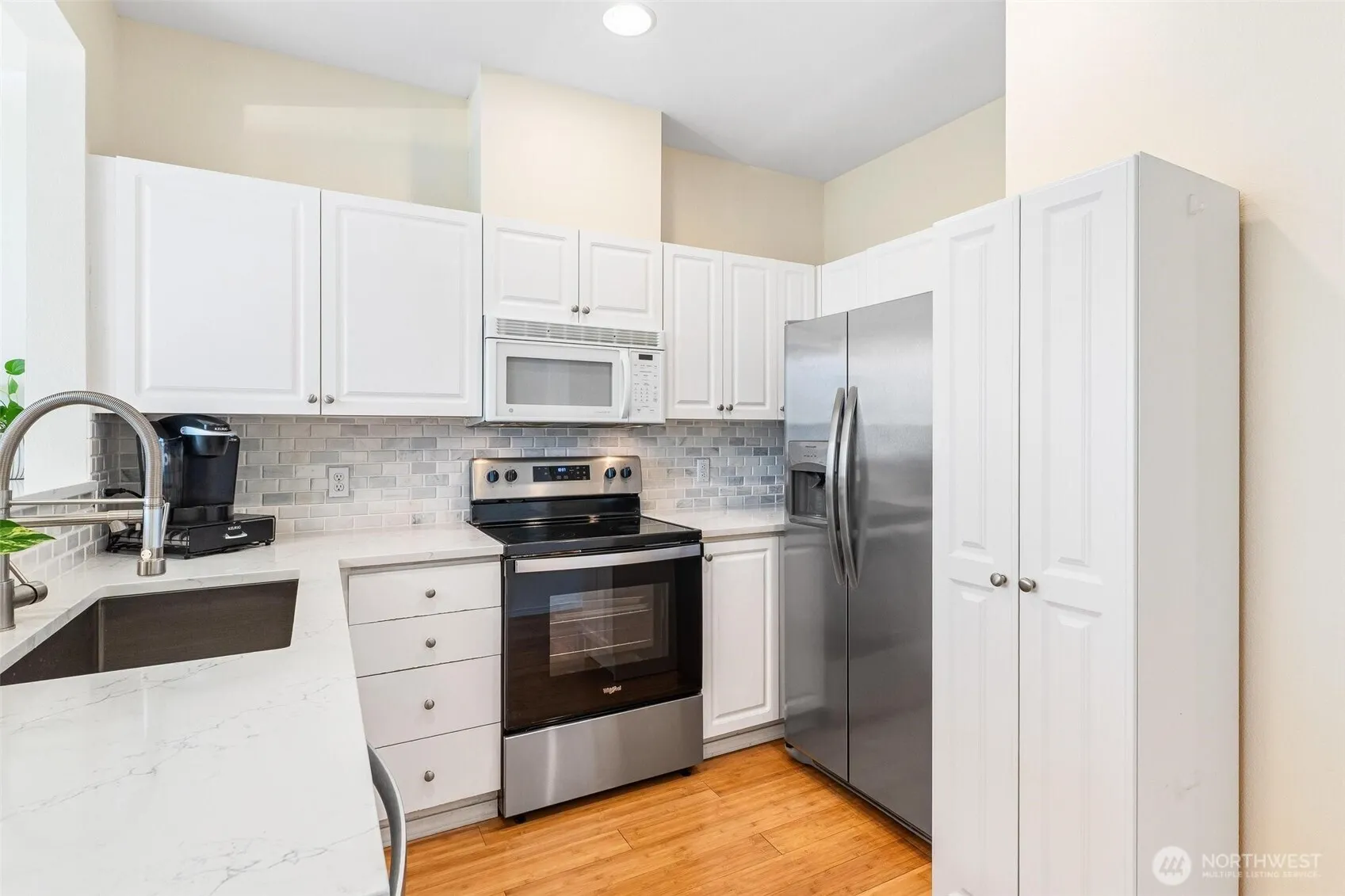 This beautifully maintained condo is move in ready and offers a spacious, comfortable layout that truly feels like home. Both the main and upper levels are filled with natural light thanks to large windows throughout. The kitchen features quartz countertops, a side pantry for extra storage, and new refrigerator, dishwasher, and oven, while the bathrooms have been thoughtfully updated. Much of the interior has been refreshed with new paint and carpet. Enjoy the convenience of an upper level laundry area and low maintenance living with an HOA that covers exterior upkeep, road and common area maintenance, landscaping, water and sewer, snow removal, and earthquake insurance, with no special assessments. Ideally located just minutes from I-405, Woodinville, Totem Lake, UW Bothell, Costco, Trader Joe’s, and more, this home offers convenience for a variety of lifestyles. A two car tandem garage provides flexibility for parking or additional storage. The community also features a clubhouse with a full gym, entertaining space, sauna, and a relaxing back patio, along with access to an EV charging station. Come see this home for yourself and schedule your private tour today.