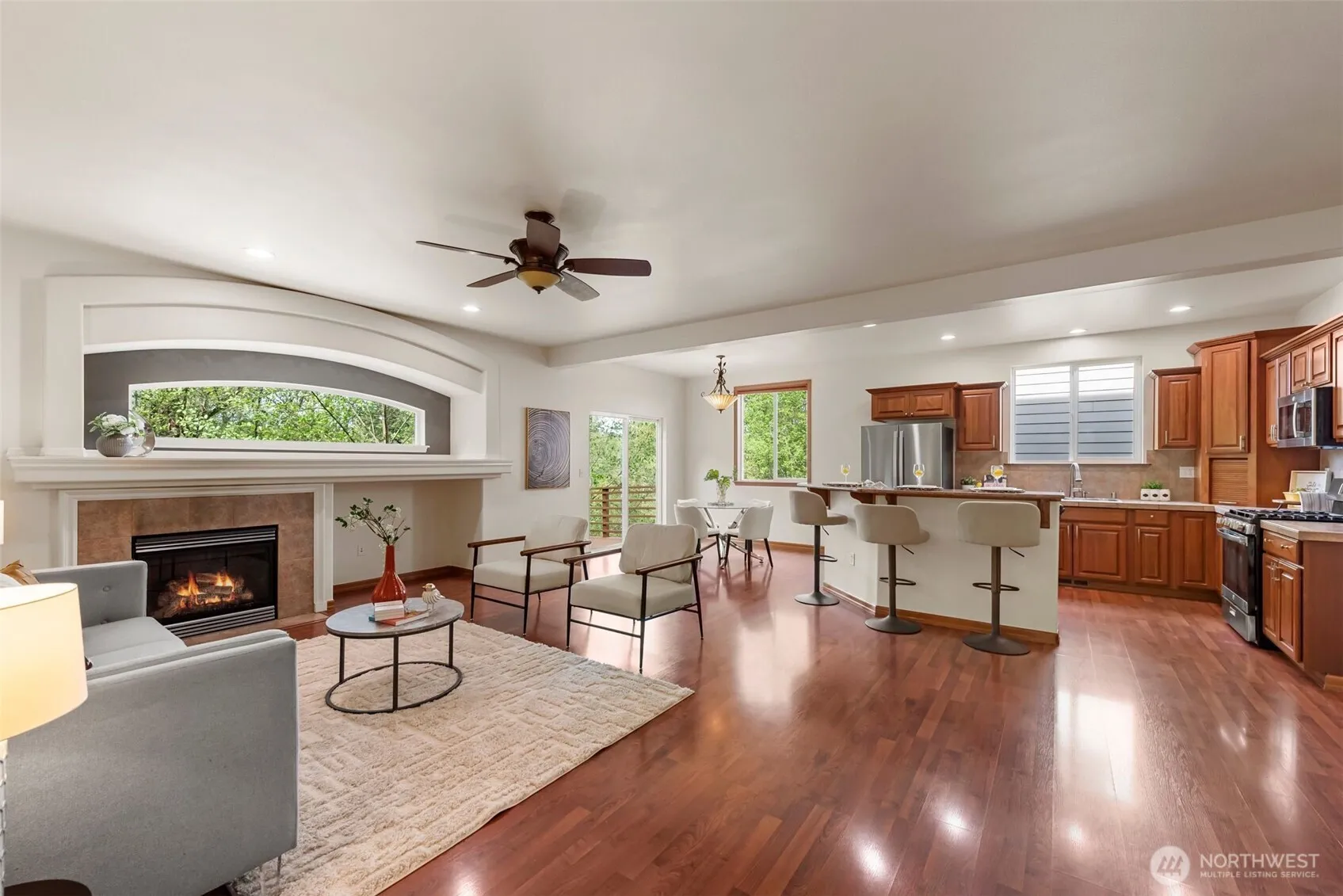 Gorgeous contemporary two floors home on a quiet cul-de-sac in Matthew’s Park neighborhood. This 3011-sf layout offers spacious master room, two living areas and a great open loft upstairs. Large windows and southern exposure keep the home sunny year around. An open kitchen with island and walk in pantry which connects a spacious family room. The home features two gas fireplaces, beautiful, vaulted living room and formal dining area, a primary suite with dual vanities and walk in closet. Lower-level den is perfect for home office. Enjoy very private backyard of three decks with all green belts around. Brand new roof and fresh interior paint, new carpet (installed by 5/5/26) plus new stove & new microwave which make this home truly move in ready. Quiet dead end street. Minutes to 522 and parks & shops. Great Northshore schools.