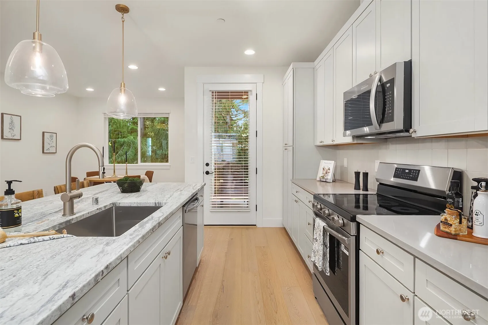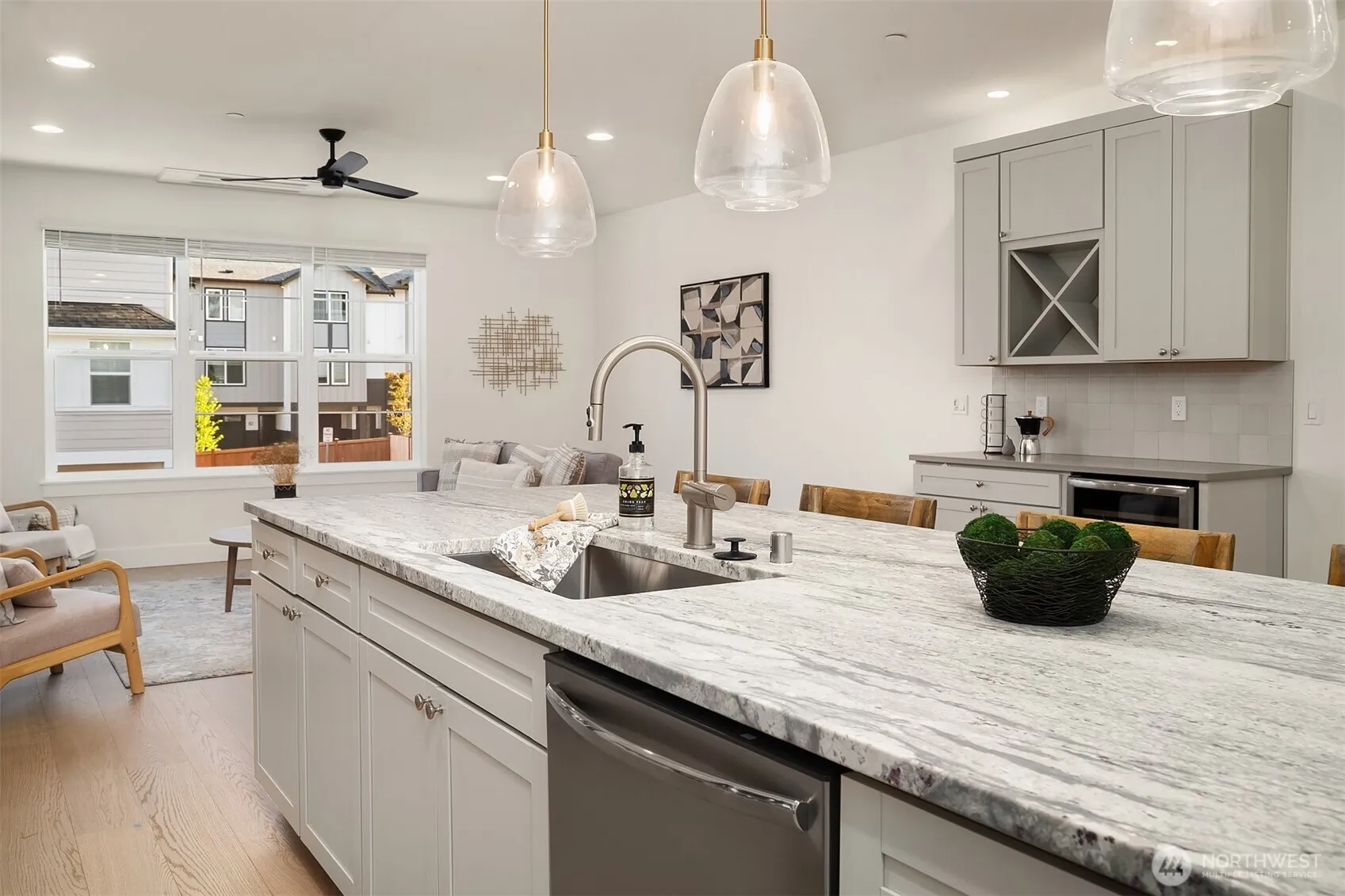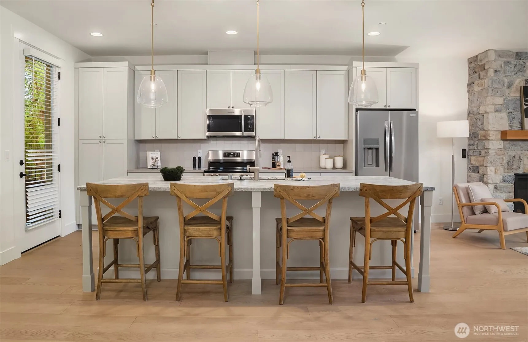 BUILDER INCENTIVES $50K rate buydown to 4.99%. Brand-new construction by Glen Eagle Homes, where modern farmhouse style meets a fresh coastal aesthetic. Thoughtfully designed with an open-concept main level, wide-plank hardwoods, and a gas fireplace wrapped in floor-to-ceiling stone. Expansive windows frame peekaboo views of the Cascades and fill the home with natural light, while the covered deck extends living outdoors year-round. The kitchen is built for gathering, featuring a large island with seating and storage, shaker-style Aristokraft cabinetry, buffet with wine storage and beverage fridge, plus a walk-in pantry. Stainless steel appliances complete the space. A main-level den and powder bath add flexibility. Upstairs, the generous primary suite offers a ¾ en-suite and walk-in closet. A versatile flex space can serve as a fourth bedroom, rec room with wet bar, or MIL setup. Ideal commuter location with easy access to everyday conveniences.
