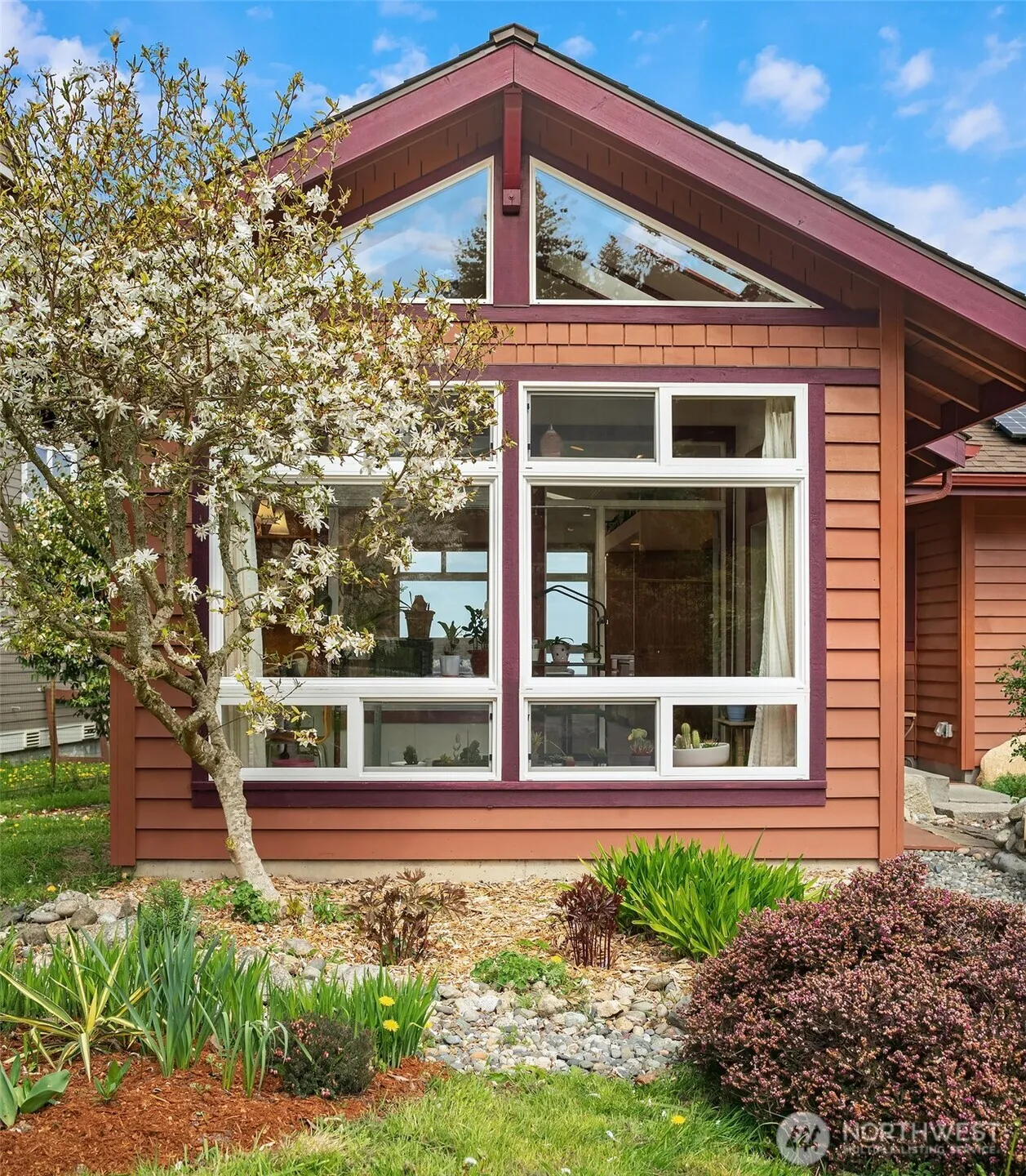 Custom-built Vashon Island home within moments of ferries to Seattle. Views of Sound, city and even Mount Baker enliven this beautifully built, lovingly maintained one-owner home with gorgeous fir trim, hardwood floors and a fantastic floor plan. Generous light-filled great room with vaulted ceilings and easy access to view-side deck overlooking the thoughtfully designed garden with fruit trees, berries & raised veggie beds. Entry patio greets you with flagstones, mature landscaping & a lovely pond with waterfall. Fresh carpet leads you down the hall to the view primary suite — and the huge secondary bedroom with vaulted ceiling, skylights, storage cabinets, sink & its own view-side deck access. Plenty of room to add another bath here for another primary suite. The atrium has been the home of many a tropical plant; makes a wonderful sitting room off the bedroom, too. The lower level has another bedroom, 3/4 bath, office space, shop with exterior door & tons of warm, dry storage; even wine racks under the stairs. Two-car attached garage is generously sized with plenty of elbow room. This home was very thoughtfully designed, very well built by a respected island contractor and meticulously maintained; a rare Vashon find. Vashon Island is the heart of the Puget Sound — within reach of Seattle via foot and car ferries, Kitsap Peninsula for jaunts to the Olympic Mountains and Mt. Rainier via Tacoma ferries.