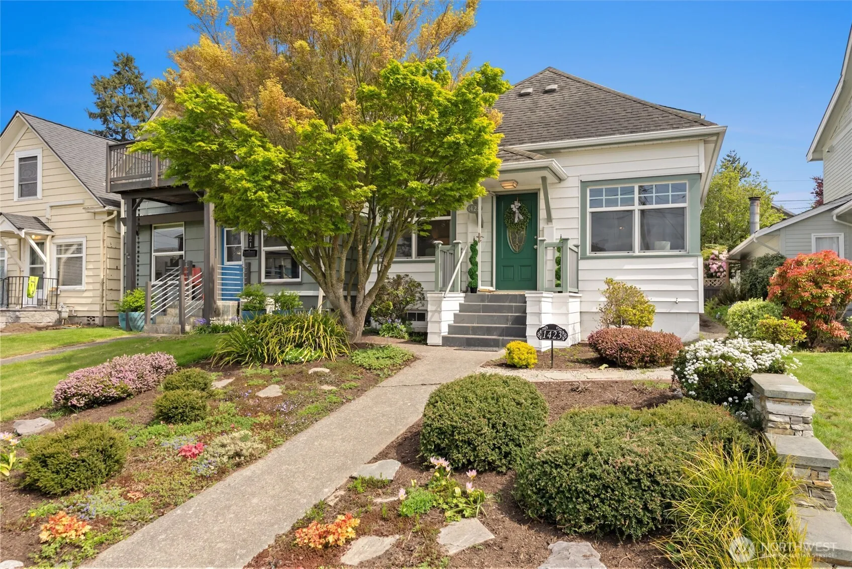 Beautiful historic home on Grand Ave in Everett with spectacular water views from nearly every west-facing window. This spacious 3 bed, 1.75 bath home is filled with natural light and offers a highly functional layout designed for comfortable living and entertaining. The expansive kitchen offers ample space, built-ins, and an eating area with convenient access to the private back patio—perfect for indoor-outdoor living. Bedrooms are generously sized with oversized closets, and a versatile loft provides additional living space with even more sweeping water views. Enjoy stunning outlooks over the waterfront, paired with a home that truly lives well—featuring a tucked-away, private backyard, a large detached two-car garage. Situated just minutes from the Everett Waterfront, parks, shopping, and dining, this home offers exceptional walkability and lifestyle. A truly solid Grand Avenue home combining charm, thoughtful touches, and unbeatable views. Come see it in person.