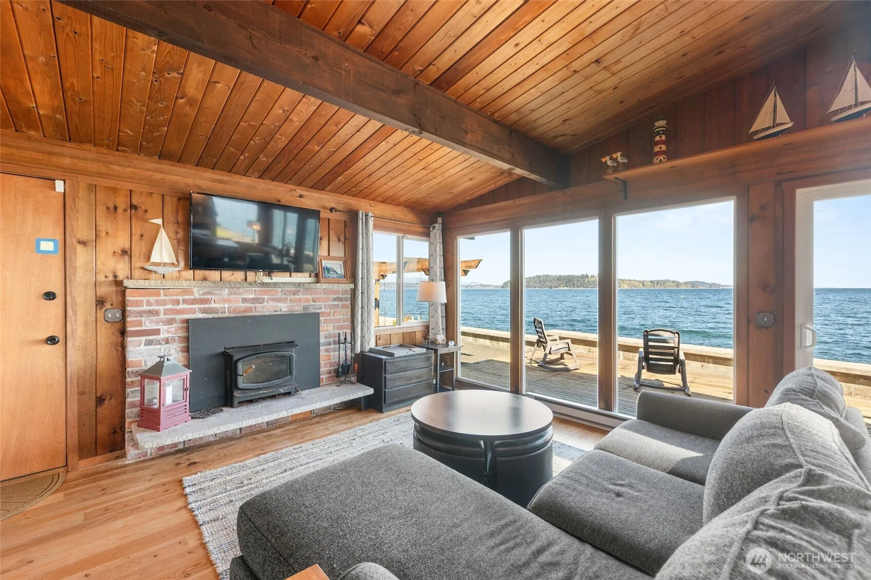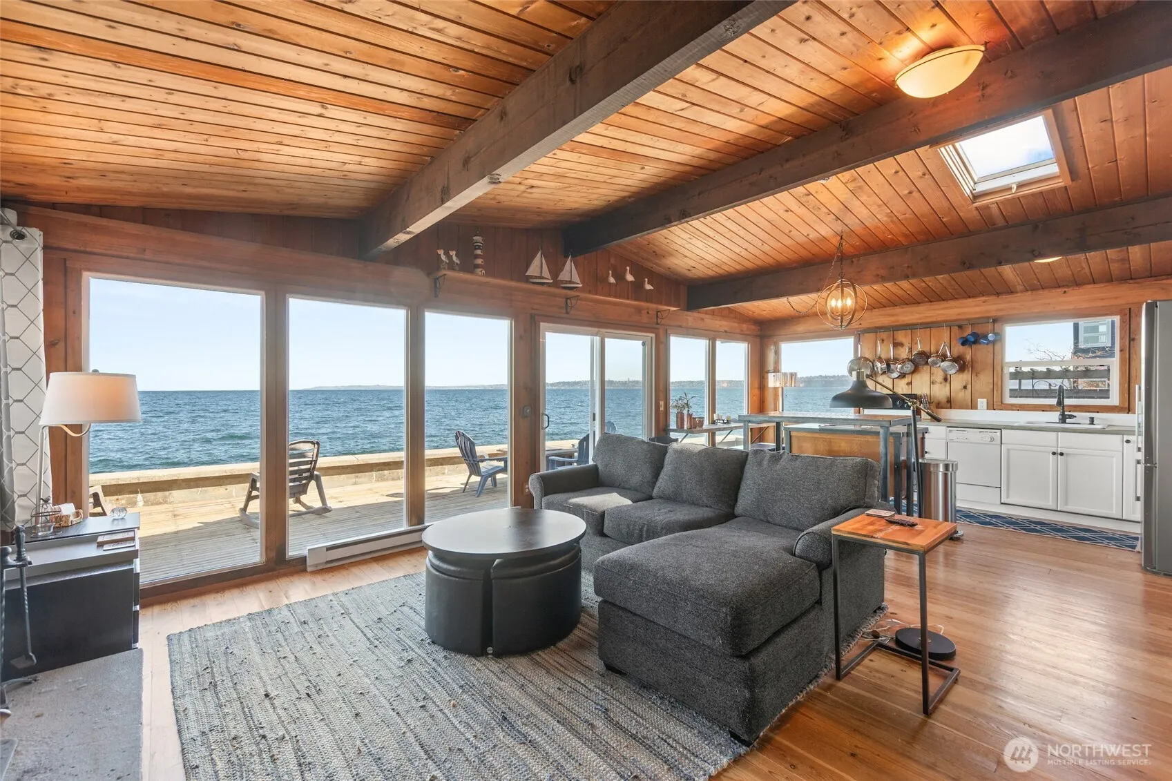 Perched along the water’s edge, just moments to the Fauntleroy Ferry & water taxi, this inviting 2-bedroom cabin on the Northend, captures the essence of PNW living with a front-row seat to ever-changing, post-card worthy views. With 138′ of waterfront, this home is perfectly situated to capture amazing sunrises, stunning sunsets, the Olympics, Cascades, Mt. Baker, Seattle city lights & and views north all the way down Puget Sound! Inside, the home blends warmth & simplicity, with an open living space, vaulted ceilings, light-filled rooms, a wood fireplace w/insert, & sliders to the amazing deck. This charming home lives beyond its footprint, thanks to a spacious deck that seamlessly extends the living area outdoors. The oversized deck becomes a natural extension of the home, perfect for dining, entertaining, or simply relaxing in the open air. Paired with the rare bonus of an additional waterfront lot that is fenced & ready for your garden, a pet, or room to grow. This lovely home is being offered fully furnished for immediate enjoyment. There is also extra storage in the outbuilding. Whether you’re enjoying a quiet cup of coffee on the deck, watching boats pass by, or cozying up indoors as the light shifts throughout the day, this cabin offers a rare combination of tranquility and visual drama, where every window feels like a living piece of art. The cabin is move-in ready, perfect as a weekend escape, full-time residence, or turnkey investment.