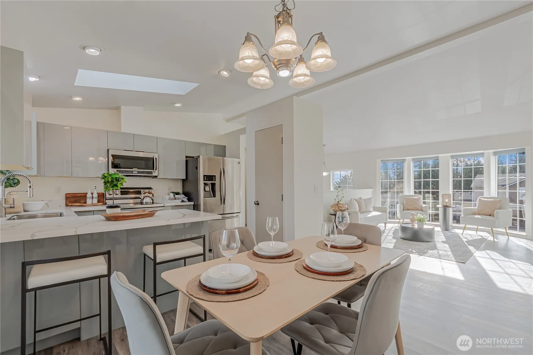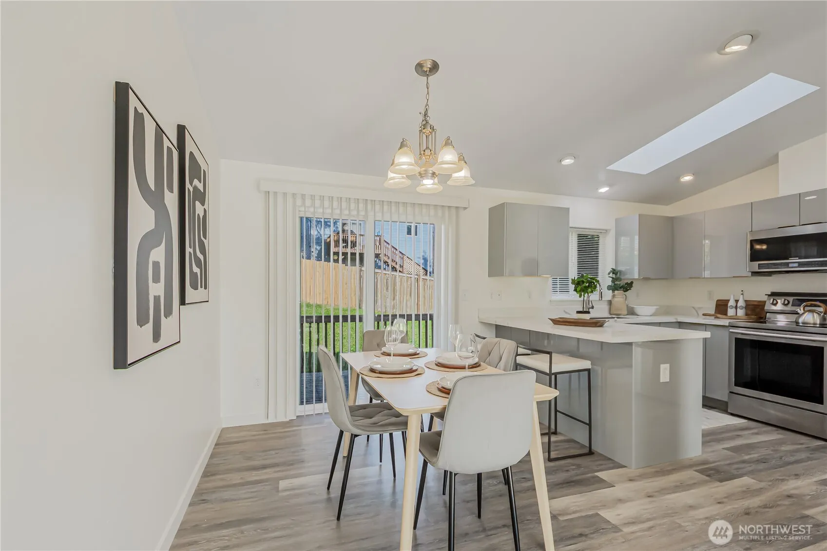 Beautiful 5-bedroom home in the desirable Glen Eagle community “The Crossing.” Bright and inviting with large windows, abundant natural light, and a cozy gas fireplace.Fully updated throughout with modern kitchen, quartz countertops, updated bathrooms, new vinyl flooring, fresh interior and exterior paint, and energy-efficient LED lighting throughout. Spacious kitchen features a breakfast bar and stainless steel appliances, flowing seamlessly into dining and living areas—perfect for everyday living and entertaining.Upstairs offers 3 bedrooms including a comfortable primary suite with walk-in closet and full bath. Lower level includes 2 additional bedrooms plus a large rec/family/media room with flexible use. Enjoy the large fully fenced backyard, garden space, and a private deck ideal for relaxing or BBQ. Generous driveway and 2-car garage provide ample parking. Located in Arlington School District with convenient access to I-5, shopping, dining, and daily amenities.
