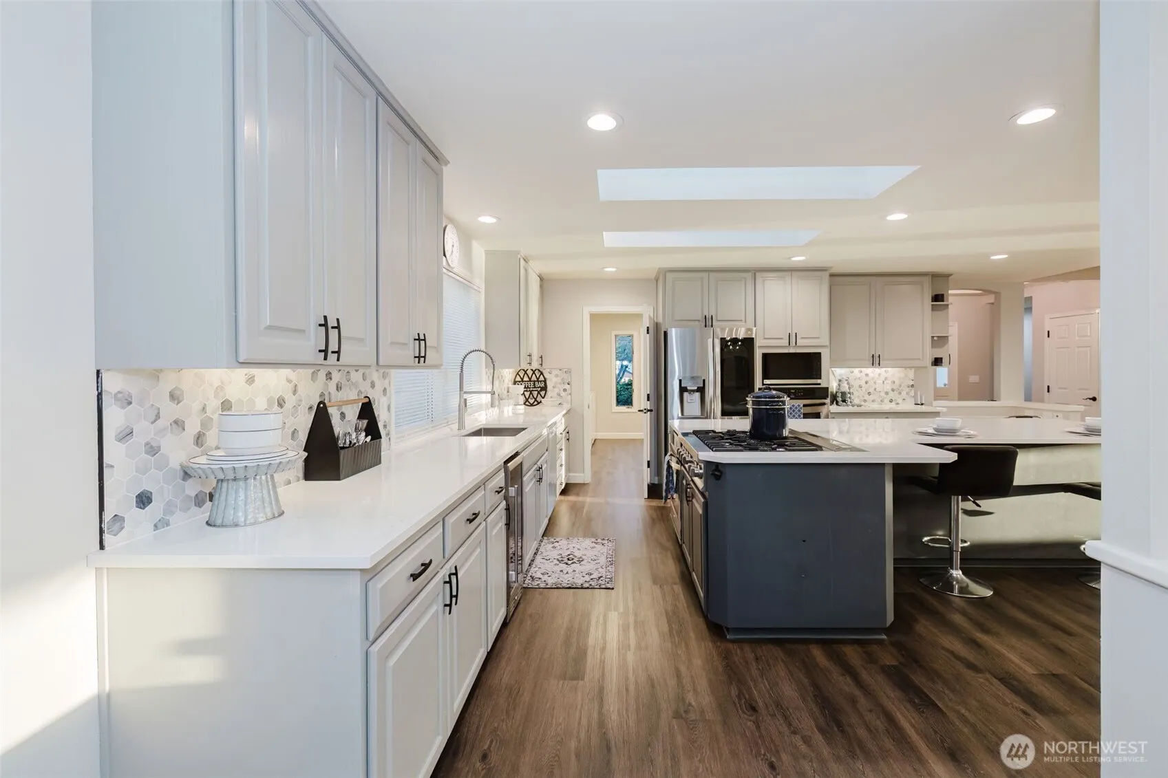 Welcome to Dockside at Kitsap Lake!! Beautifully updated 4 BR home complimented with the most amazing view of the Olympic Mountains and Kitsap Lake! Enjoy this amazing large cook’s kitchen w/cooktop & down draft, 2 separate ovens, built-in microwave, door-knock refrigerator, dishwasher and wine/beverage fridge. Quartz countertops, under cabinet lighting and skylights make it light and bright! You’ll find a very large island with seating space, desk area and a formal dining space. Separate pantries and a laundry room that includes a built-in ironing board and even more cabinetry. New LVP and carpet throughout. Step down to the enormous great room that leads to a large entertainment deck where you can sit, relax & enjoy the views! Wonderful extra large primary bedroom suite that’s to die for!! Paired with an extraordinary primary bath with abounding elegance! Beautiful Satori tile, double vanities, spacious bright separate shower, a STEAM room plus a walk in closet & linen closet for all your belongings. Make up area as well! The library is ready for an office or can be used as a 4th bedroom. On the opposite side of the house are the 2 other spacious bedrooms with lighted closets and a full bathroom nearby. Two-car garage has a shop bench area, 1/2 bath and even more storage. Newer sprinkler systems makes watering the yard easy! Community swim dock, low HOA’s dues. Fiber optics currently being installed. Easy commutes and close to amenities.