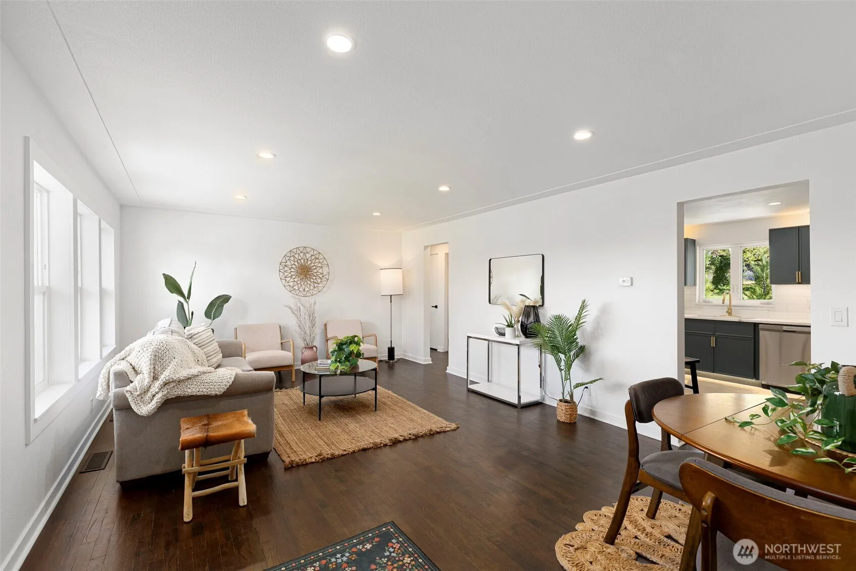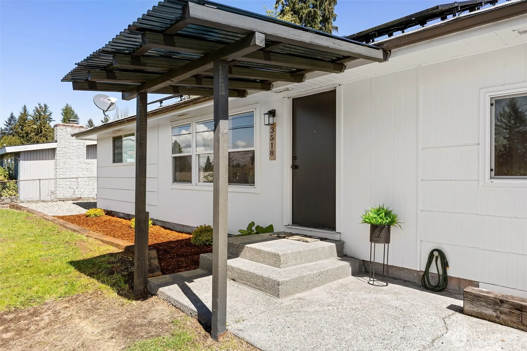 Completely reimagined and effortlessly stylish, this stunning single-level home offers modern living at its finest. The front yard hedges frame the Olympic Mountain range beautifully allowing you to capture stunning sunsets and year around views inside and out. From the moment you step inside, you’re welcomed by refinished natural hardwood flooring that flows throughout paired with new stone tile, creating a warm and cohesive feel. The beautifully updated kitchen is a true showpiece, featuring new cabinetry accented with striking gold hardware, gleaming stainless steel appliances, and elegant white marbled quartz countertops that bring both sophistication and function together. The bathroom has been thoughtfully updated with contemporary finishes andclean, modern touches. Step outside to a covered patio perfect for year-round entertaining or quiet relaxation, all surrounded by mature landscaping that provides both beauty and privacy. Enjoy the benefits of the solar panels offering peace of mind and energy efficieney for years to come. With its single-level layout, high-end finishes, and turn-keycondition, this home delivers the perfect blend of comfort, style, and smart living.