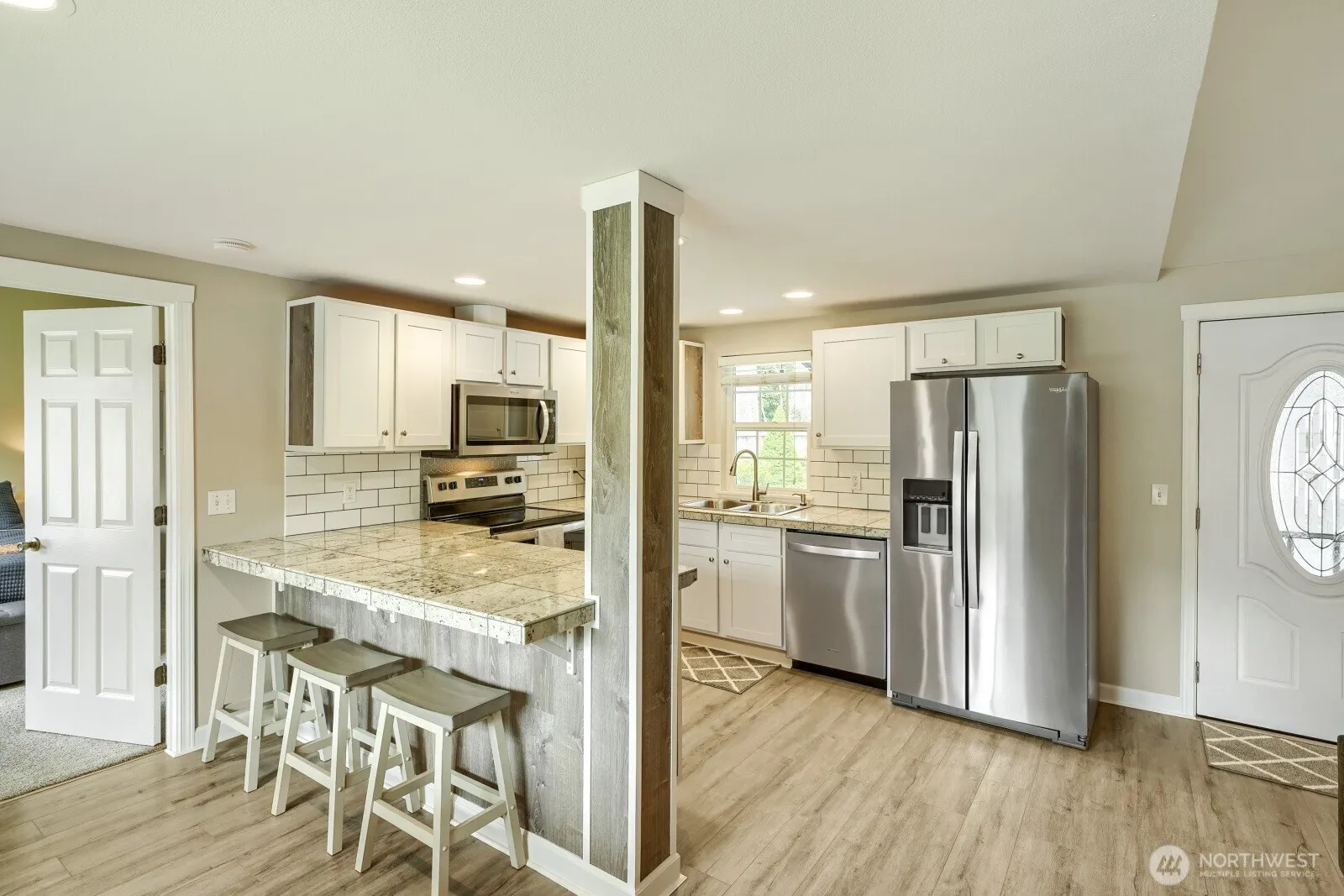 Clean and well-maintained one-story home with 3 big bedrooms and 2 full bathrooms. Primary suite has a private bathroom and walk-in closet. Bright & open kitchen has been updated with white cabinets, granite countertops and stainless-steel appliances, both bathrooms have been updated too. Stylish LVP flooring. New roof and fresh exterior paint. large two car garage and extra parking out front. Fully fenced backyard has a party sized patio for summer BBQs and a shed for storage, yard equipment or? The Cherokee Bay Community has a private lakefront beach park that features a boat launch (no internal combustion engines), a fishing and swimming dock and a beach plus a playground and clubhouse. Coveted Tahoma School District. Convenient location is close to schools, shopping and restaurants.