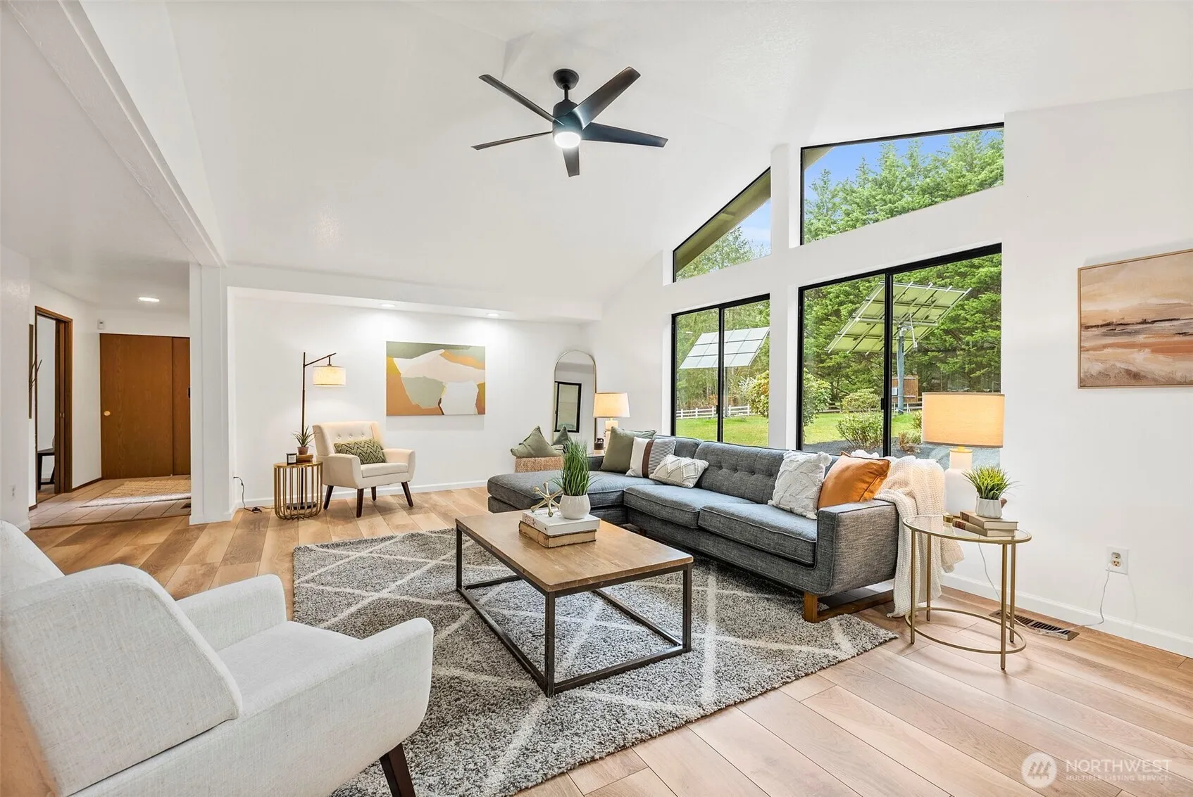 Fresh, efficient, and beautifully updated—This Maple Valley rambler delivers the updates buyers are looking for, with the lifestyle they want. The open, light-filled layout centers around a large, open kitchen that feels bright and welcoming. Nearly every major system has been upgraded in recent years, including flooring, interior and exterior paint, furnace, and water heater. Green features shine with solar panels, EV charging, and a durable metal roof. The spacious attached garage offers room for parking, storage, and shop space, and the deck composite creates the perfect place to relax while overlooking mature landscaping. Retreat to the primary suite with dual closets, private deck access, and an updated ensuite featuring a soaking tub and walk-in shower. A rare blend of comfort, function, and thoughtful upgrades—Come see what makes this property stand out.
