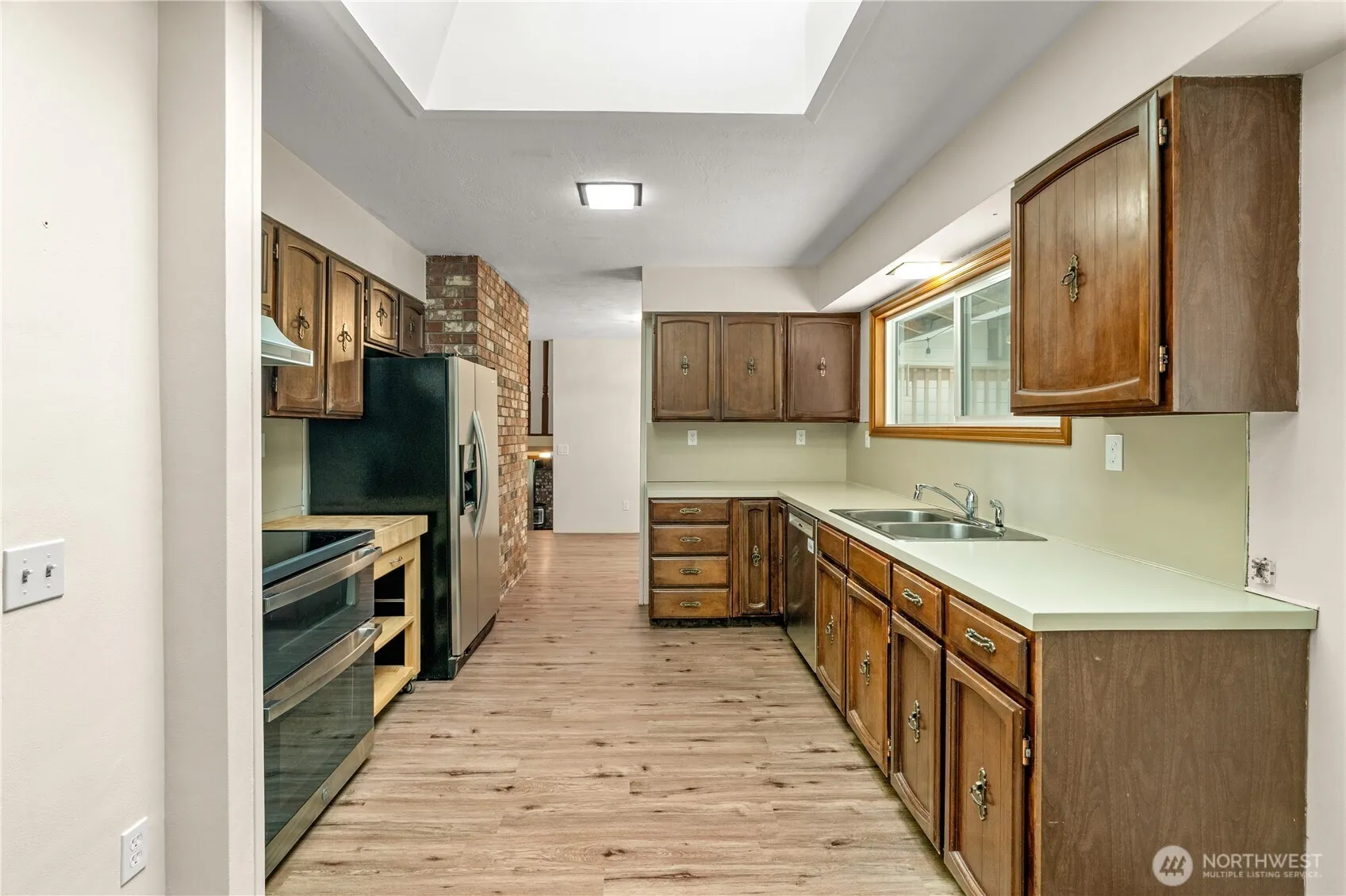 Secluded 3.4+ acres on dead-end, quiet road. 3+ bedroom, 2.25 bath, large family room on lower level. Oversized primary with additional room for office/closet/sitting area, private deck with relaxing views perfect for morning coffee. Spacious kitchen with eat in space. Outside is a large side yard, fenced back yard with large deck, shed and garden space. The back portion of property provides a nice green belt with creek. Lots of parking provided by attached 2 car garage and additional driveway parking.