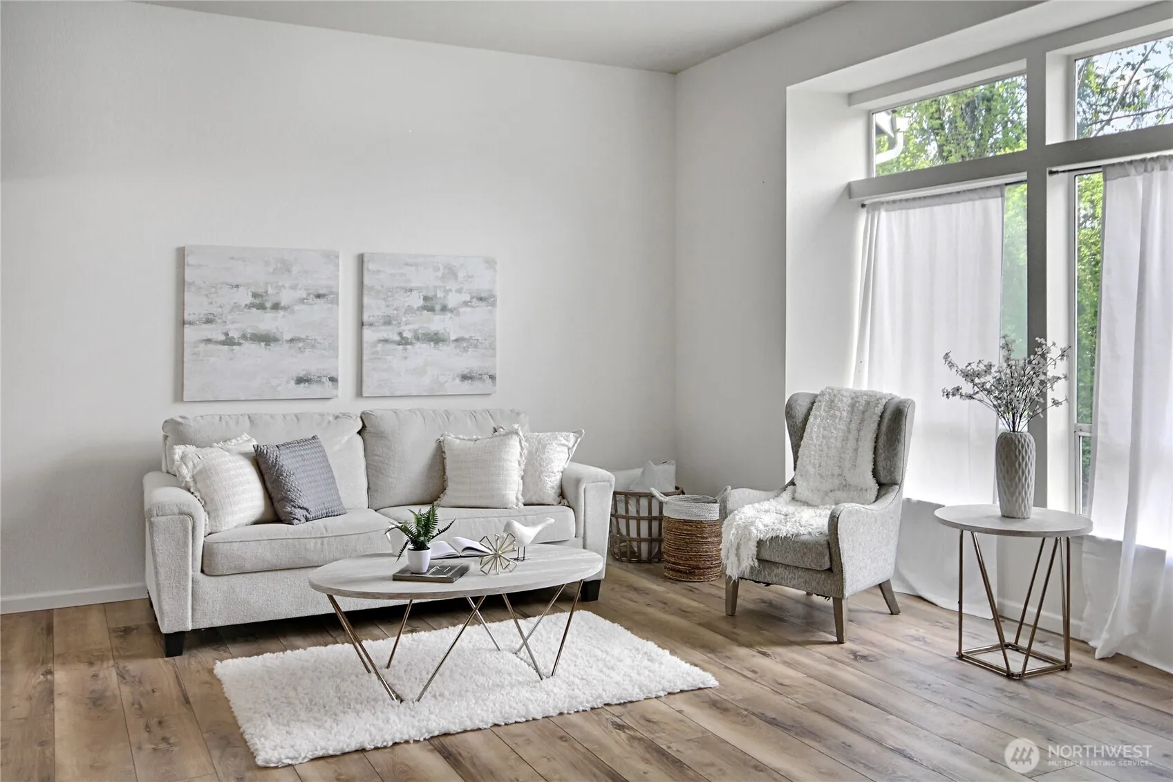 Affordable and adorable best describe this home! Set on a lot that borders on the South and West property lines to publicly owned land (City of Covington) you will enjoy privacy and wildlife all year long! Open & light filled with vaulted ceilings over all living areas making the space feels even larger than the square footage indicates. Newly refurbished with new appliances, new hot water tank LVP flooring throughout, new 6 panel doors, refreshed bathrooms and a 3 year old roof & exterior paint… its move in ready! 2 car garage. All appliances stay with the house. Great commute local North & West of Covington traffic yet minutes from Costco, restaurants and shopping and walking distance to both middle and high schools!