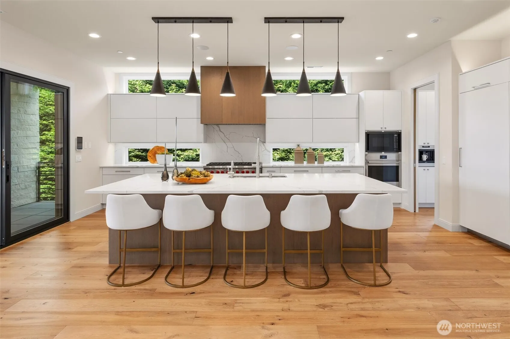 An extraordinary Clyde Hill estate offering privacy, scale, and refined modern living in the heart of one of West Bellevue’s most sought-after neighborhoods. Recently built on an impressively large lot, this residence showcases modern architecture and refined finishes throughout. The home features six spacious en-suite bedrooms, a private media room, an expansive bonus room with a bar, and a climate-controlled 350+-bottle wine cellar designed for the serious collector. A gourmet chef’s kitchen with top-tier appliances is complemented by a separate prep kitchen, allowing for effortless hosting. A refined library and extensive custom closets add both elegance and function. Walls of windows and soaring ceilings bring in abundant natural light and frame peaceful territorial views. The grounds have been fully reimagined with new professional landscaping, are perfect for outdoor entertaining, and are completely secured with fencing, a private gate, and security cameras for ultimate privacy. Ideally located minutes from downtown Bellevue, world-class shopping, dining, and top-rated Bellevue schools.