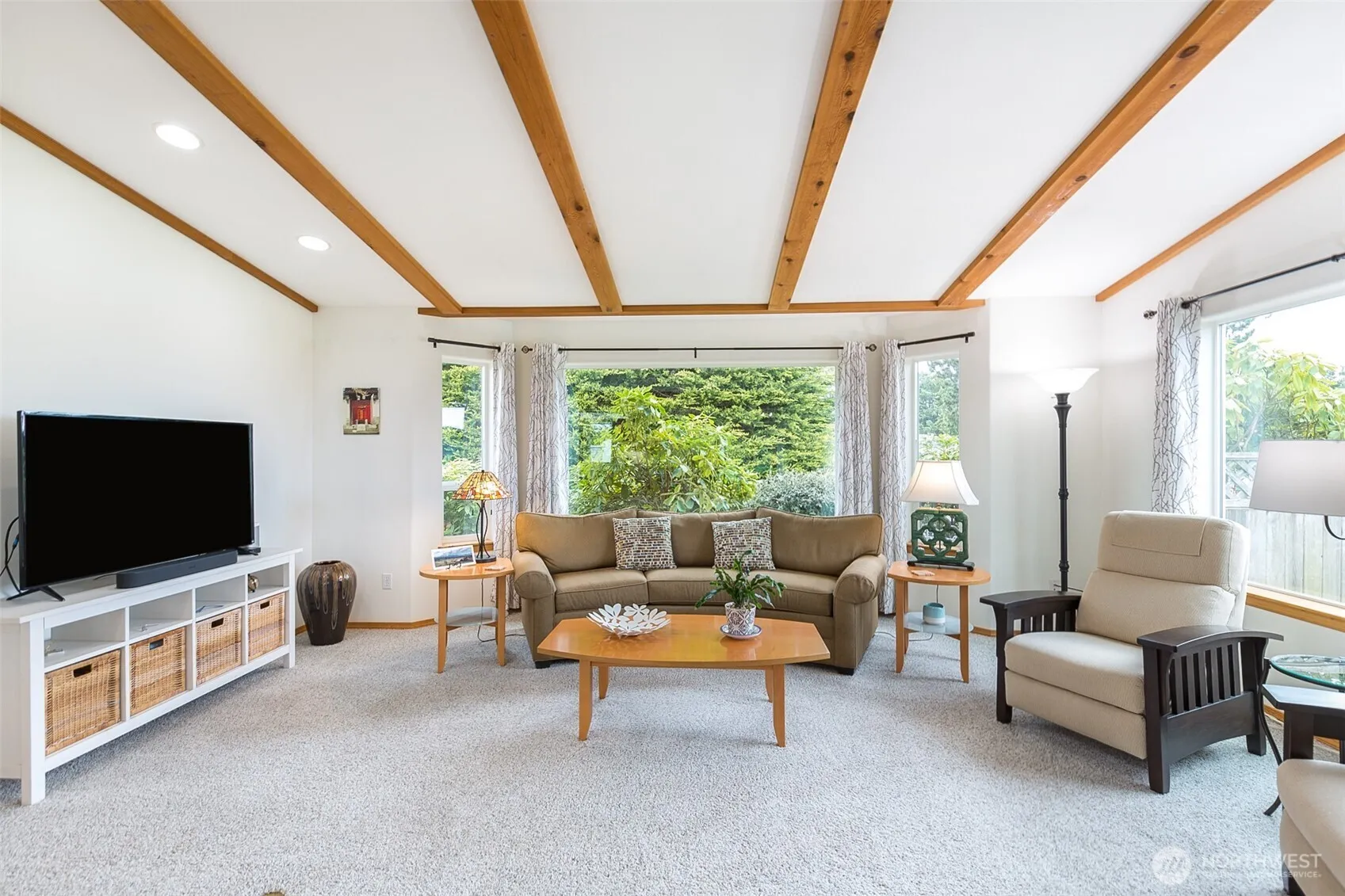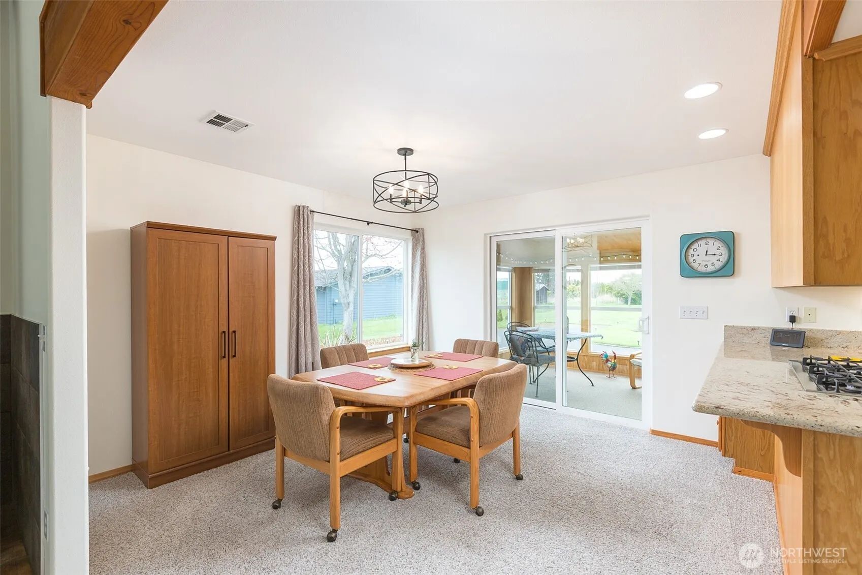 Mountain View retreat on .67 acres of beautifully manicured grounds, gardens, and orchard! This spacious 2,175 sq ft home offers 3 bedrooms and 2.5 baths with vaulted ceilings and striking cedar beams, creating a warm yet open feel. Enjoy year-round natural light in the attached sunroom just off the dining area. The kitchen features granite countertops, propane cooktop, double ovens, stainless steel appliances, and updated lighting—ideal for both everyday living and entertaining. Additional highlights include a woodstove, heat pump, central vacuum, wide hallways, and three solar tubes. Over 250 outlets and upgraded LED lighting add convenience and functionality. A standout feature is the extensive shop and garage space totaling 1,788 sq ft—including an attached oversized 2-car garage with office/studio, a second garage with its own electrical panel, a third outbuilding perfect for hobbies, plus an additional equipment shed and greenhouse. The property is supported by Cline Irrigation and includes fruit trees, berries, a variety of flowers, shrubs, and outdoor lighting throughout. Community beach access. A rare combination of space, utility, and scenic beauty—perfect for hobbyists, gardeners, or those seeking a peaceful lifestyle with room to grow.