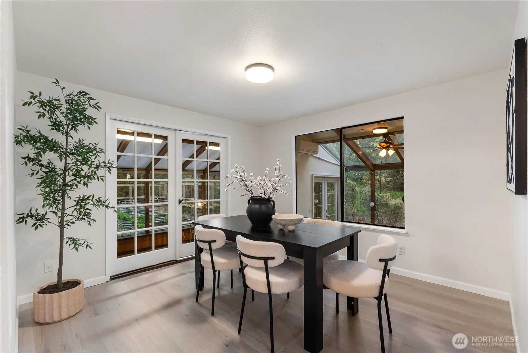 Beautiful 4-bedroom home set on a private shy-acre lot in Sammamish, offering a rare combination of space, comfort, and natural surroundings—all with no HOA dues. This home features a bright and inviting layout with abundant natural light throughout, including a sunroom that provides a versatile space for relaxing or enjoying the outdoors year-round. The spacious living areas flow seamlessly and open to a large deck, perfect for entertaining or quiet evenings surrounded by nature. Recent updates include refreshed interior paint, new luxury vinyl plank flooring in select areas, and updated kitchen island cabinetry, giving the home a clean and move-in-ready feel. The kitchen offers great functionality and storage, while the overall layout provides flexibility for everyday living, work-from-home needs, or hosting guests. The outdoor space has been thoughtfully enhanced with garden and front lawn improvements, including added infrastructure and irrigation. The property offers a balance of usable yard space and mature trees, creating a private setting with room for gardening, entertaining, or simply enjoying the peaceful surroundings. Additional highlights include generously sized bedrooms, 3-car garage + driveway parking, ample storages, and a setting that feels tucked away while still being conveniently located near parks, schools, shopping, and everyday amenities. A unique opportunity to enjoy space, privacy, and comfort in one of Sammamish’s most desirable areas. Welcome home!