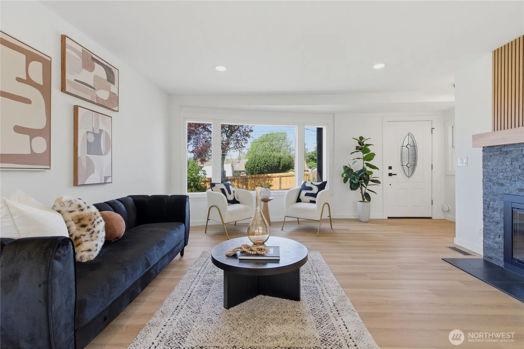 Stunning fully renovated 4-bed,2-bath home offering modern luxury at an exceptional value! Thoughtfully redesigned with high-end finishes throughout, this home features a bright open-concept layout and abundant natural light. The elegant living space showcases custom wood panel accents and a wood burning fireplace, creating a warm, upscale feel. The designer kitchen is a true showstopper with European-style cabinetry, premium tile finishes, stainless steel appliances, and a striking waterfall-edge island—perfect for entertaining. Enjoy beautifully updated bathrooms with spa-inspired finishes and a spacious layout designed for comfort. Situated on a huge, fully fenced lot, this property offers endless possibilities for outdoor living, expansion, or investment potential. Located close to schools and everyday amenities, this move-in-ready home is priced to sell—a rare opportunity to own a turnkey luxury home at an incredible value!