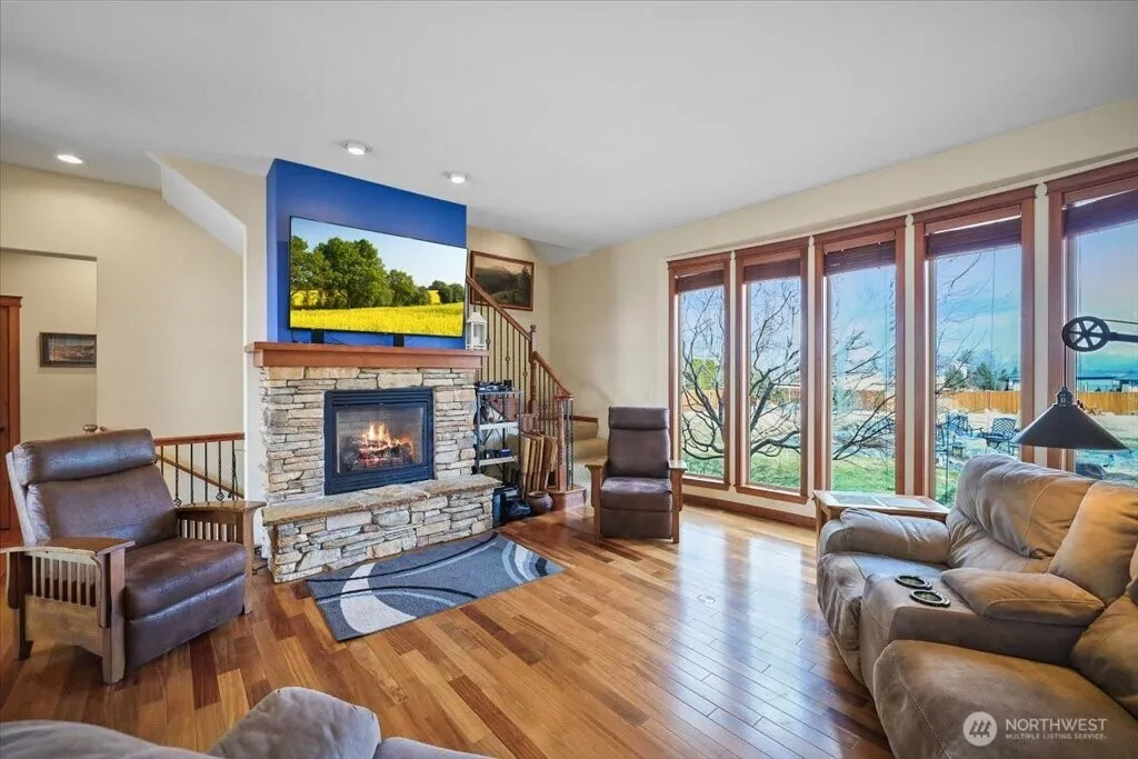 No place like Moss Ln for this aptly painted home with a view! This is a great home in the 5-Mile area with a shop on 1+ acres. At 3,900+ SF, this property is sure to suit your desire for space, privacy, entertainment, outdoor living, and gardening plus RV storage in the 30’ x 40’ shop. Main-level living with 3-bedrooms/2-baths plus an office. The main floor features high ceilings, stone-accented fireplace, custom kitchen, hardwood floors, and custom millwork. The primary suite is sweet with see-through fireplace, vaulted ceilings, custom tile shower, sunken tub, double sinks, and walk-in closet. The finished basement and bonus rooms offer flexibility and room to spread out. Water feature, outdoor fireplace, AC, fenced yard, and much more!