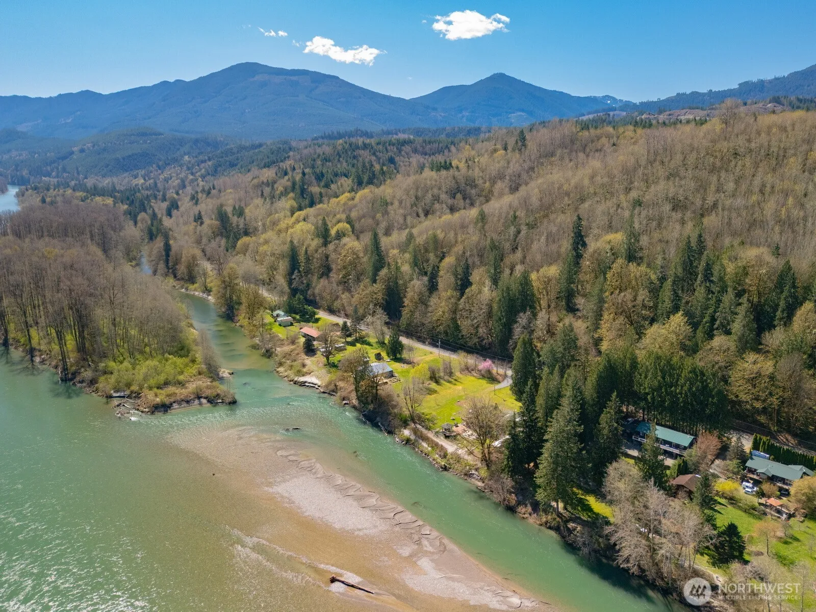 Enjoy breathtaking views of the Skagit River and Sauk Mountain from the full-length deck of this well-crafted 4-bedroom home, offering a spacious, thoughtfully designed layout with quality finishes throughout. The main level features a large kitchen with clear fir cabinetry, granite countertops, and stainless steel appliances, opening to a welcoming living room with a wood stove and expansive windows that showcase the surrounding natural beauty and provide access to the deck—perfect for taking in the serene riverfront setting. This home offers a true lodge-like feel, surrounded by nature. The primary suite serves as a private retreat with a jetted soaking tub and separate shower. Additional living space includes a second primary suite with a private family room, bedroom, and full bath with a jetted tub, plus a newer gas fireplace. This area currently operates as a successful Airbnb, offering income potential or multi-generational living. The semi-finished daylight basement adds versatility with an additional bedroom, half bath, dry bar, and flexible space for a rec room or guest suite. Set on a large, usable lot with a private, campsite-like feel, the property includes a greenhouse, potting shed, RV hook-up, and covered boat or tractor storage. Enjoy peaceful, nature-filled living with stunning views year-round—an exceptional Pacific Northwest retreat.