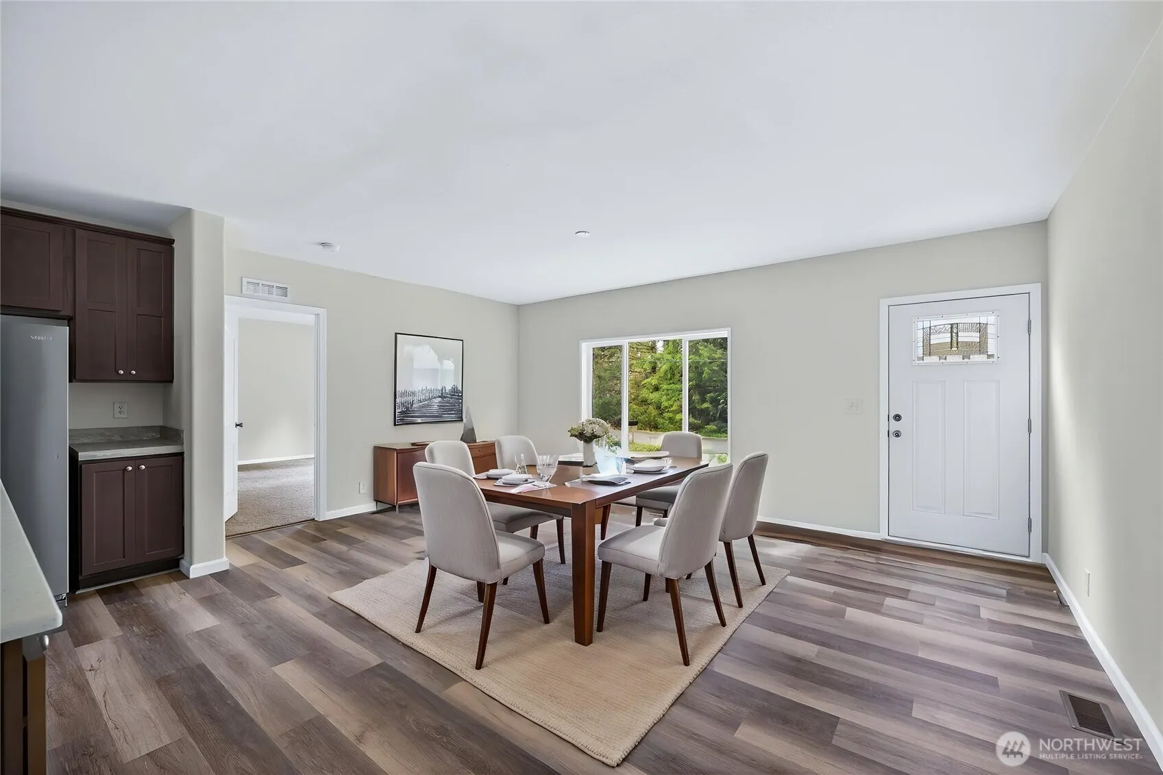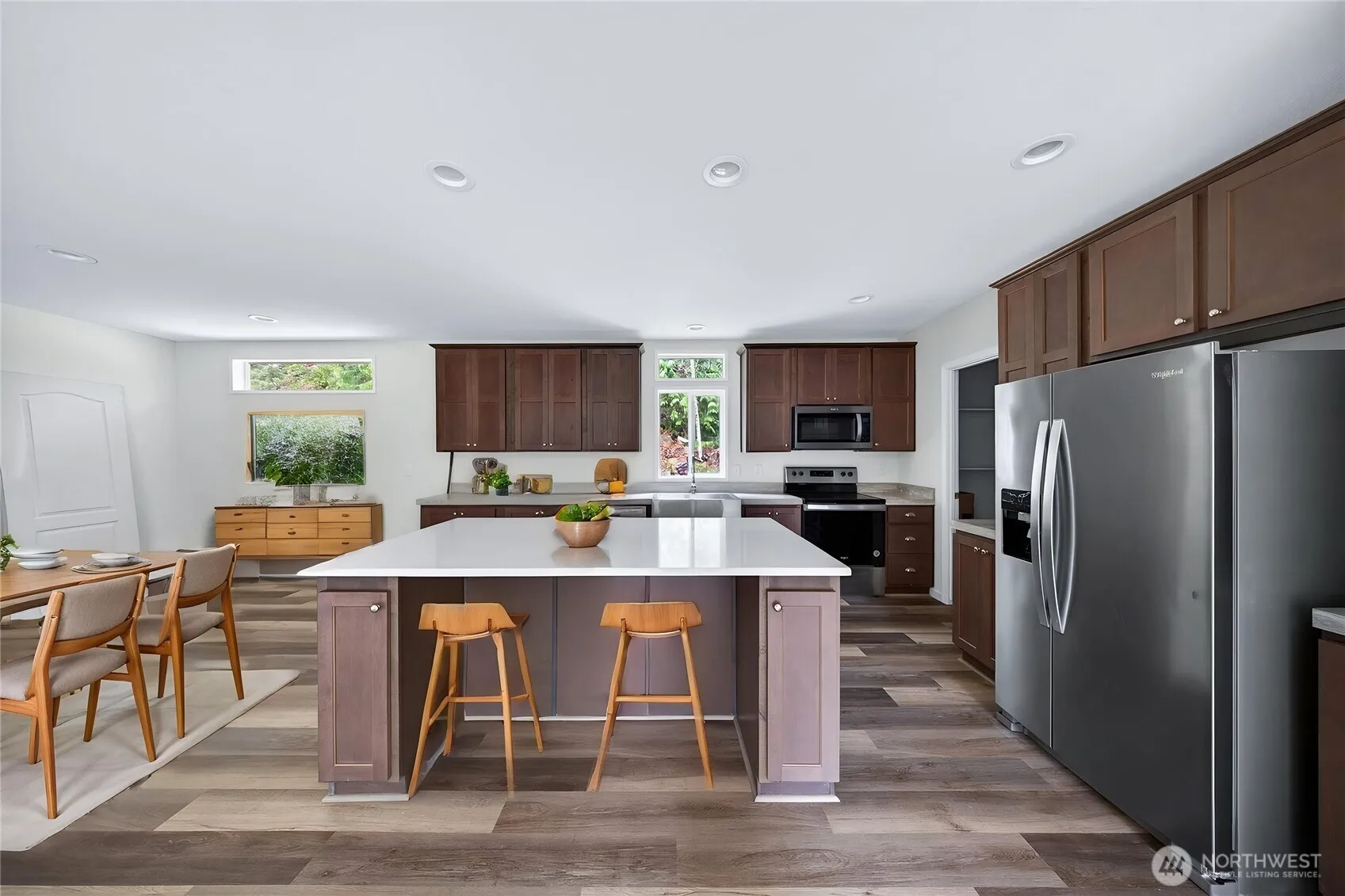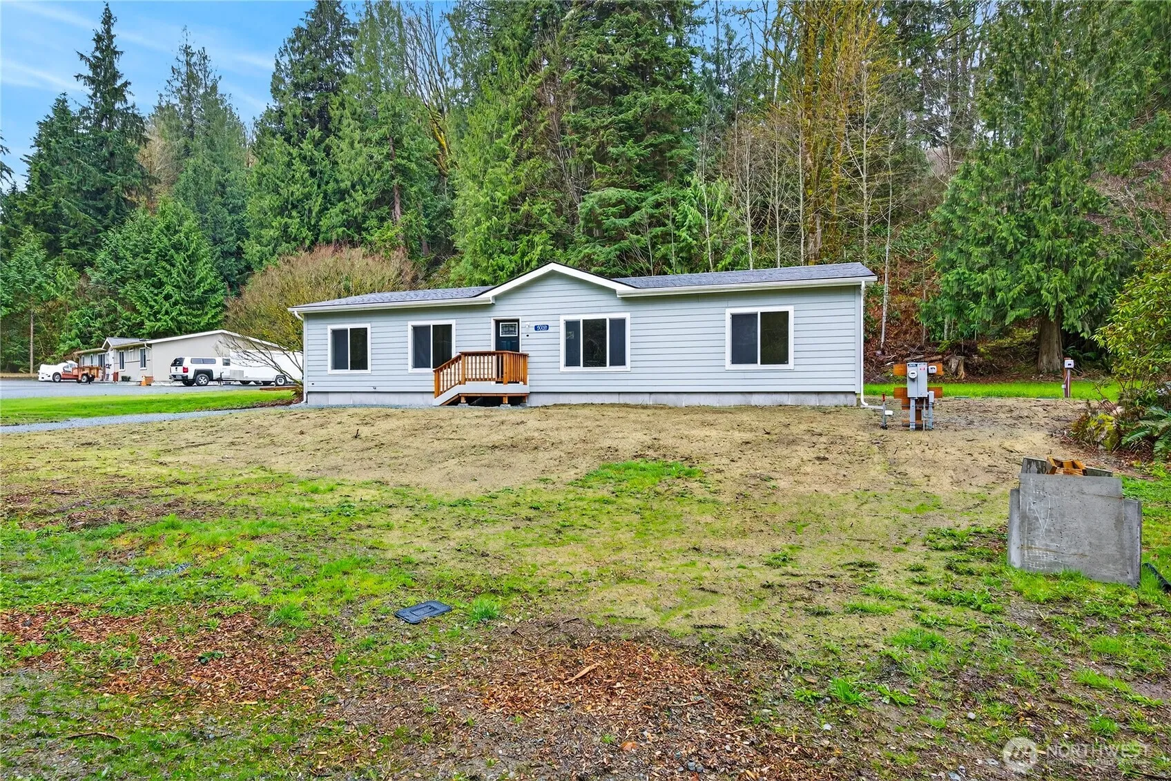 Tucked into a peaceful, wooded setting, this like-new single-level home offers the perfect blend of privacy, comfort, and modern design. Step inside to a bright, open layout with durable luxury flooring, recessed lighting, and large windows that bring in natural light and serene greenery views. The spacious living area flows seamlessly into a beautifully appointed kitchen featuring rich cabinetry, stainless steel appliances, a farmhouse sink, oversized island, and a walk-in pantry for added storage and functionality. The thoughtfully designed floor plan offers generous bedroom spaces and a stylish full bath with modern finishes. Outside, enjoy a freshly built deck—ideal for relaxing, entertaining, or taking in the quiet surroundings. The expansive lot provides room to garden, play, or create your ideal outdoor retreat, all while being surrounded by mature trees for added privacy. Move-in ready and designed for easy living, this home delivers the lifestyle you’ve been looking for—quiet, comfortable, and connected to nature.