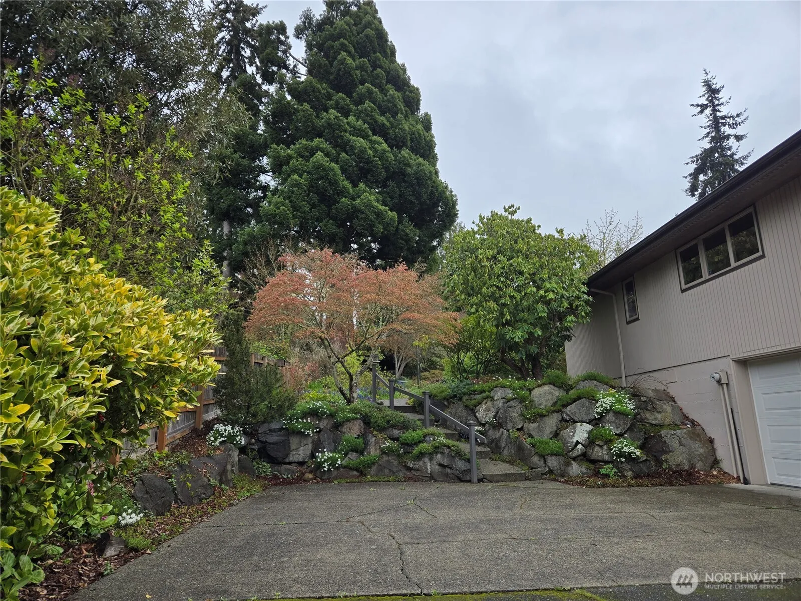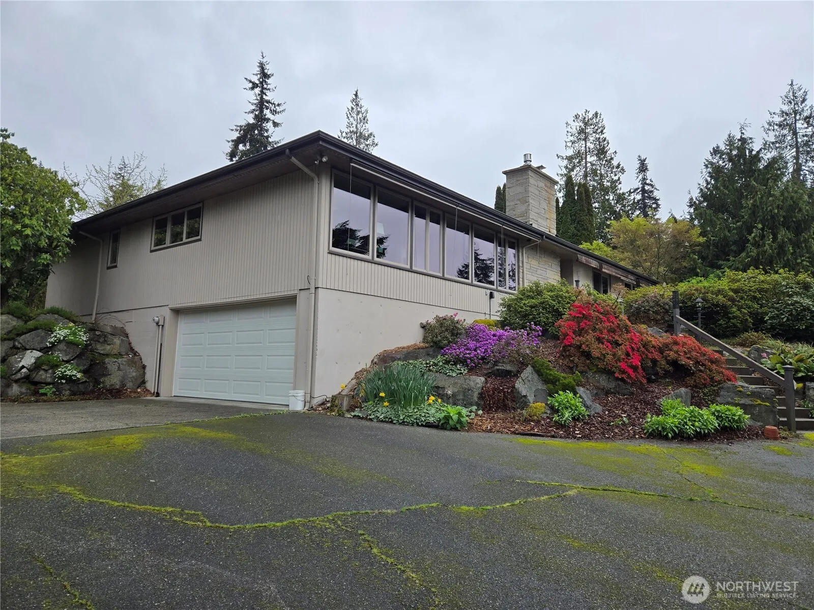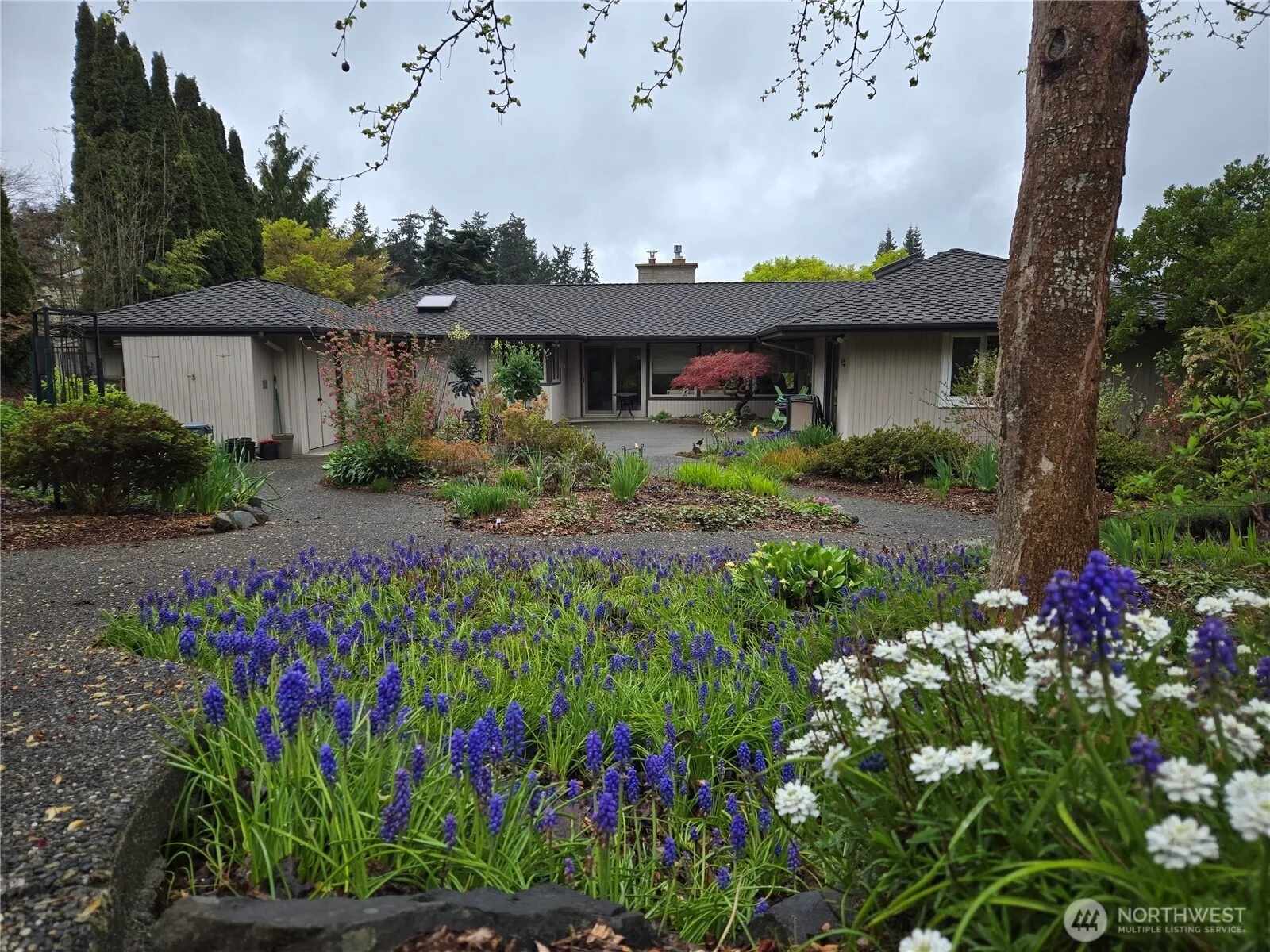 A rare 27,863 sq. ft. lot / .67 acre in a quiet, sought-after Edmonds Seaview area. A Frank Lloyd Wright inspired home of low-pitched roofs, wide overhanging eaves, open floor plan. Beautifully landscaped & lovingly maintained with mature trees and specimen plants. The circular driveway, meandering path through the peaceful serene front & back garden areas. A 50-year Presidential roof, 6 sky-windows, ‘Tuscany’ casement windows. The living and dining rooms have windows on both sides of the house, to enjoy the view of mountains, trees, garden & peek-a-boo-view of the sound. The gourmet kitchen has large granite counter tops, Subzero refrigerator, Miele and Gaggenau ovens with a build-in dedicated pizza stone, & a 6 burner Thermador cooktop.