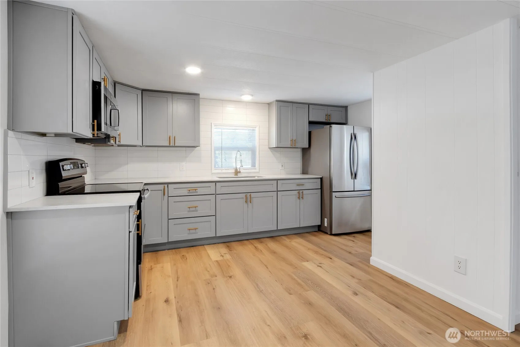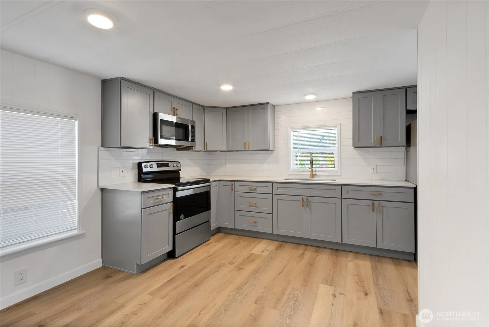 Wonderful Remodeled in Fairfield Estates a 55+ community! Home offers 2 bedrooms 1 bathroom. Brand new kitchen w/lots of cabinet space & beautiful 3-seems quartz countertops w/backsplash~New stainless steel appliances included. Spacious living room open to the kitchen and dining space. Two spacious bedrooms with a large closet and a gorgeous bathroom. New waterproof laminate flooring throughout the home & new carpet in the bedrooms. New windows~New lighting features~this MH is better than new. Plenty of parking space 2-car carport & 2 more spaces on the driveway~large storage/shop space w/power and a large covered deck for BBQ. This park is spotless and well-managed.