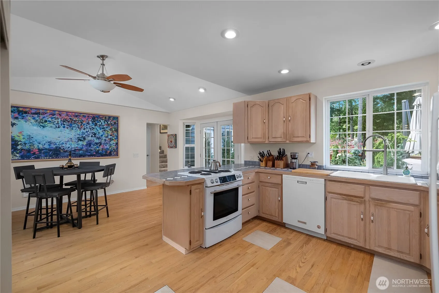 Location is everything—and this home delivers with standout views of the 8th tee and a setting that keeps you close to all Lake Limerick amenities. Offering over 2,000 sq feet of useable living space and 2 car garage + golf cart pull through with shop, this one stands out! This home features a well-designed floor plan with defined living spaces, ideal for those who prefer separation over open concept. Large windows bring in natural light and frame the golf course, creating a relaxed, connected feel throughout. The kitchen includes tiled counters and functional workspace with a pantry. Ready for your personal updates, starting with your choice of exterior stain for that beautiful cedar siding – including a painting credit at closing. The home provides a solid foundation with room to tailor over time. Outside, nursery trees add greenery and a sense of privacy, and the golf course backdrop offers a dynamic view that changes with the seasons. Enjoy access to Lake Limerick amenities including a 9-hole golf course, pro shop, private restaurant, lounge, two lakes, parks, playgrounds, trails, and more—supporting an active lifestyle in a scenic setting. Painting credit offered (if not completed prior to closing) AND so many nursery stock trees ready for a green thumb. Come and take this home into your care and put your personal touches on it!